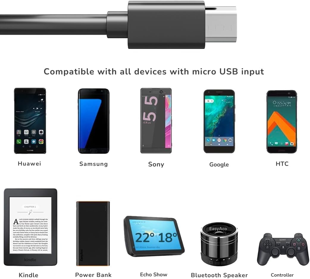 pluX 5V 1A Micro USB Mains Charger for AMAZON KINDLE FIRE HD 7 8.9”, Paperwhite HDX, PS4 XBOX1 & Samsung Nokia HTC Sony Google External Battery and more USB Devices with Micro USB Charging Port