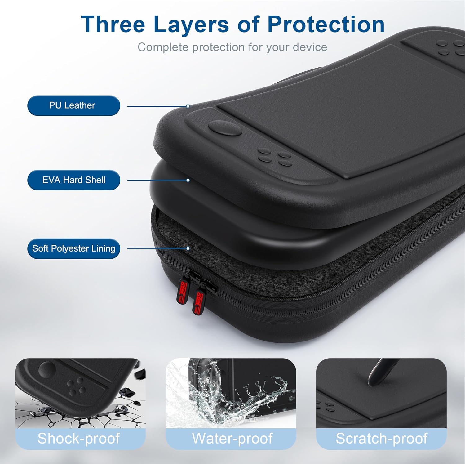 All-around Protection: The Switch 2 hard case features a waterproof PU leather exterior that easily withstands everyday splashes and rain. The high-density EVA hard shell structure effectively protects against drops and squeezing. The soft, plush lining provides a delicate touch, scratch resistance, and shock absorption, offering all-around protection for your Switch 2