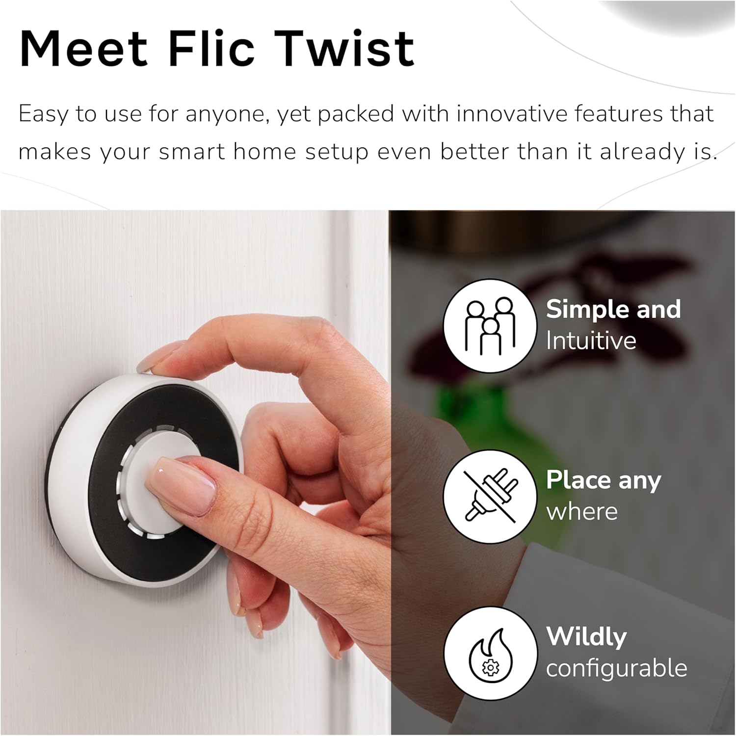 Accessible and User-Friendly for All Ages – The intuitive design of Flic Twist makes it easy to use for everyone in the family. Without the need for apps or voice commands, this smart home automation device offers voice-free control with intuitive, efficient dials.