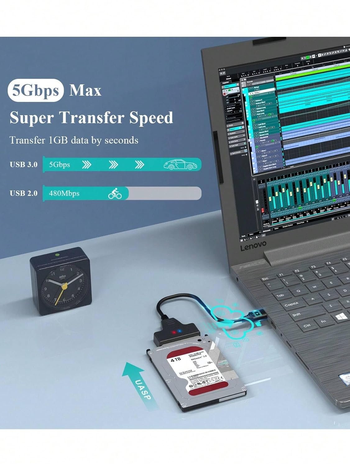 【High speed data transmission】Our USB 3.0 to sata cable transfer rate speed up to 5Gbps. Support hot swap, SMART and TRIM technology, improve SSD read and write efficiency, and help you monitor various errors that may occur on the hard disk. Note: Only 2.5/1.8 HDD mechanical disk and SSD can be used. 3.5-inch desktop hard disk cannot use this cable.