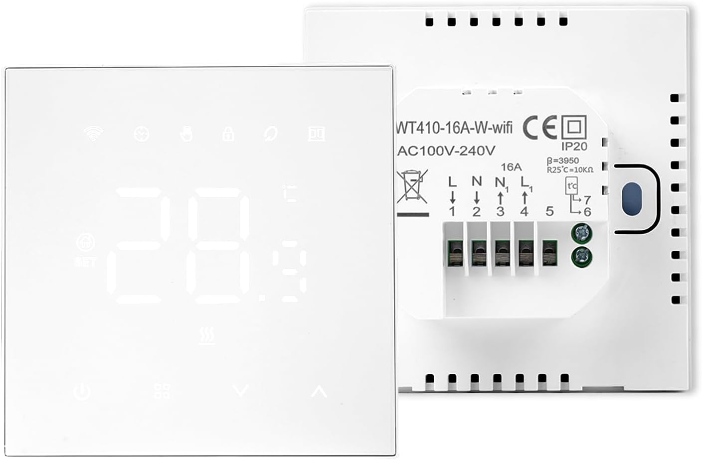 Jadeshay Smart WiFi Thermostat, Digital Programmable Touch Screen Heating Thermostat, White, Wi-Fi, Modern Style
