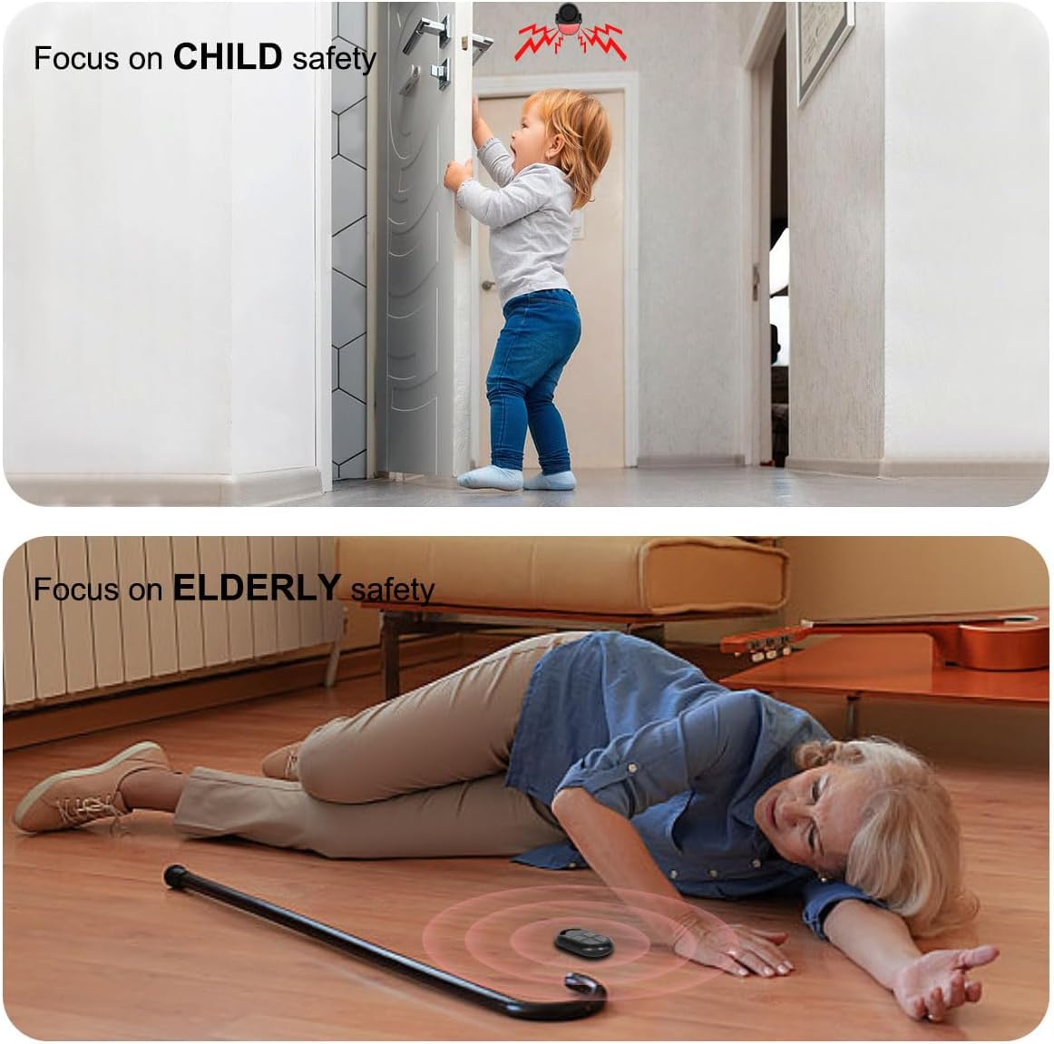Multi-functional: Home Alarm with SOS buttons can press the call button when the elderly or children fall, also can be mounted to the stairs, gate, yard Prevent the elderly and children from going out of the supervision area, easy to install Just stick the Alarm Systems for Your Home in the right position, or set it up with the bracket