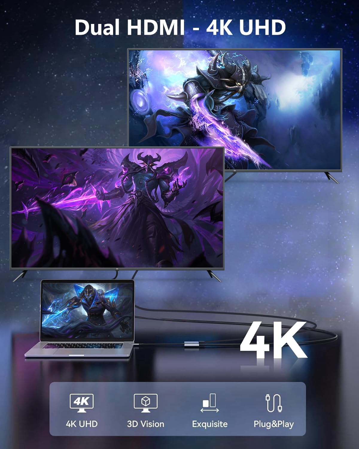 【Dual 4K Monitor Productivity】 – Easily extend your laptop screen to dual HDMI monitors with 3840×2160@30Hz resolution, perfect for financial trading, programming, video editing and multitasking. Mirror or extend the display via USB-C port.