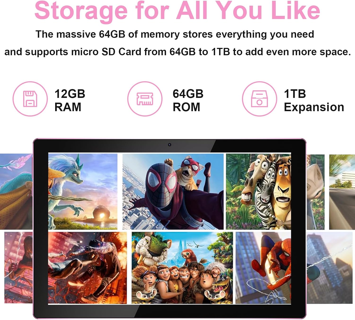 【Powerful Performance, Smooth Experience】The Electronics tablets Equipped with a 2.0GHz high-speed processor, 12GB (4+8 expansion) large RAM+64GB flash memory, supports SD card expansion up to 1TB, multitasking runs without lag, and storage space can be expanded as desired.