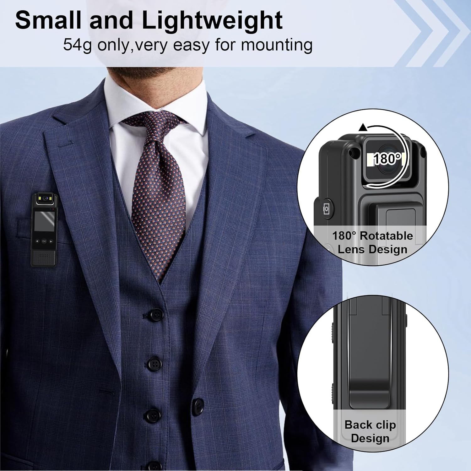 180° Rotatable Lens: Mini portable body camera with a 180° rotatable/120° lens that can adjust the lens direction to your demand to ensure that the camera does not record at a wrong angle, miss the important evidence.