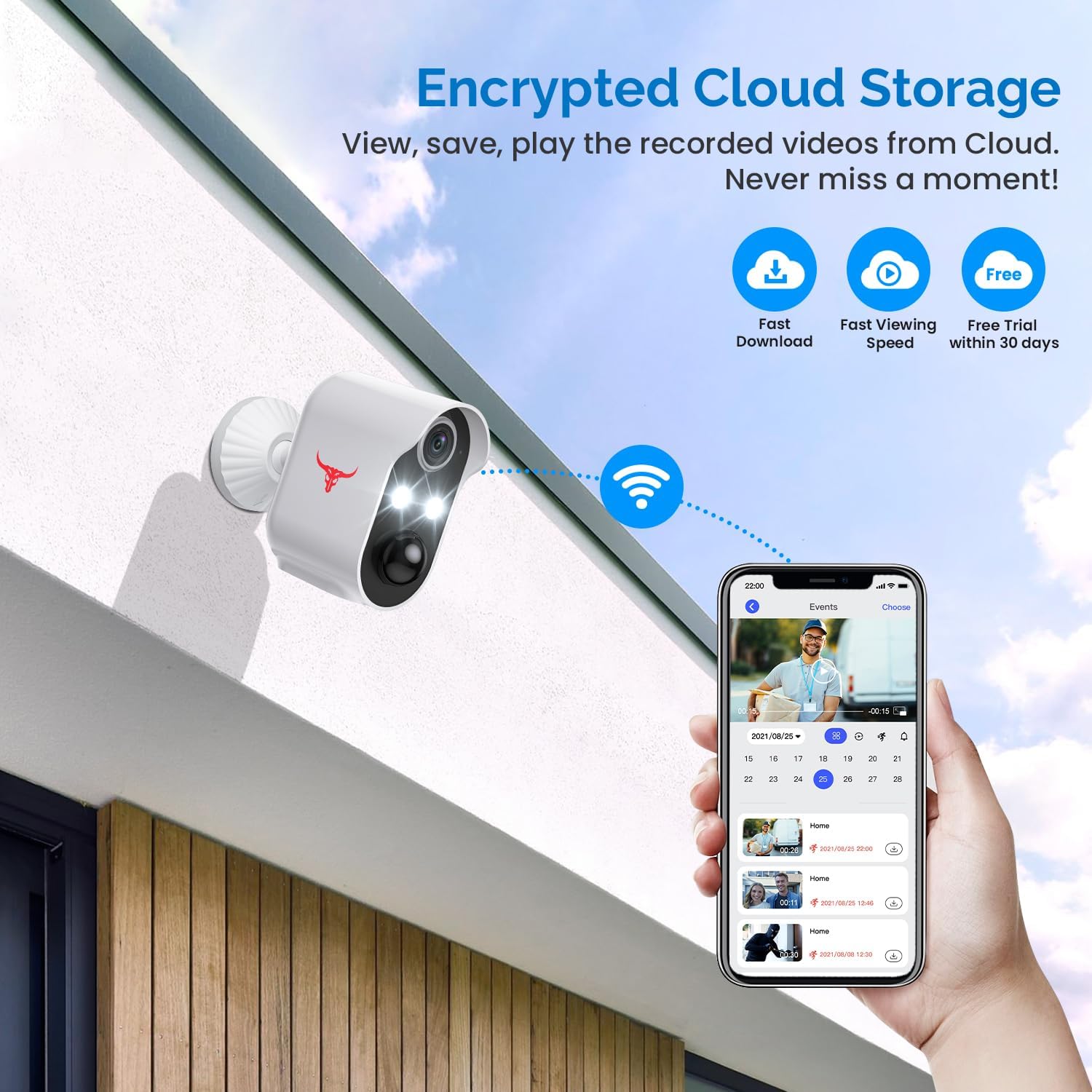 【Encrypted Cloud Storage & Weather Resistant】Safeguard your footage with AES-128 encrypted cloud storage. Choose a subscription plan (sold separately) for enhanced security features, including video saving, reviewing missed events, and sharing videos. With IP65 dustproof and waterproof certification, this camera ensures reliable security throughout the year.