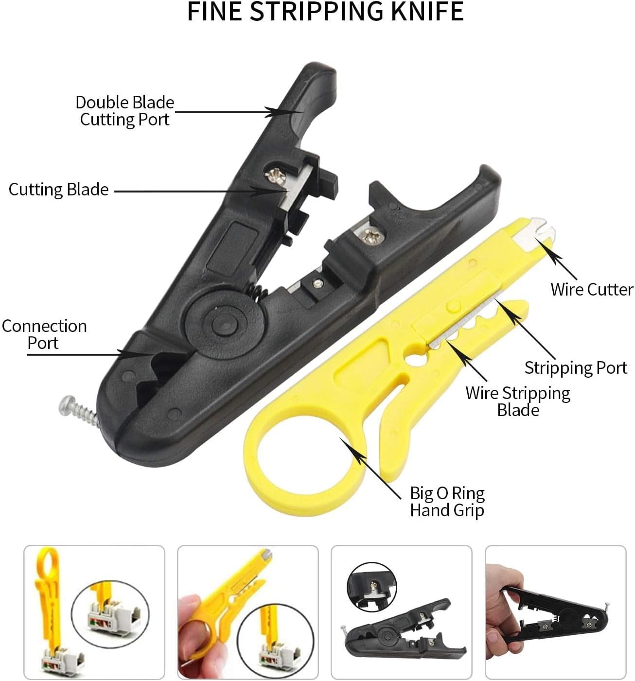 A variety of stripping specifications, suitable for thick line and thin line arbitrarily selected; Adjustable stripping depth of the blade is positioned accurately to prevent damage to the cable.