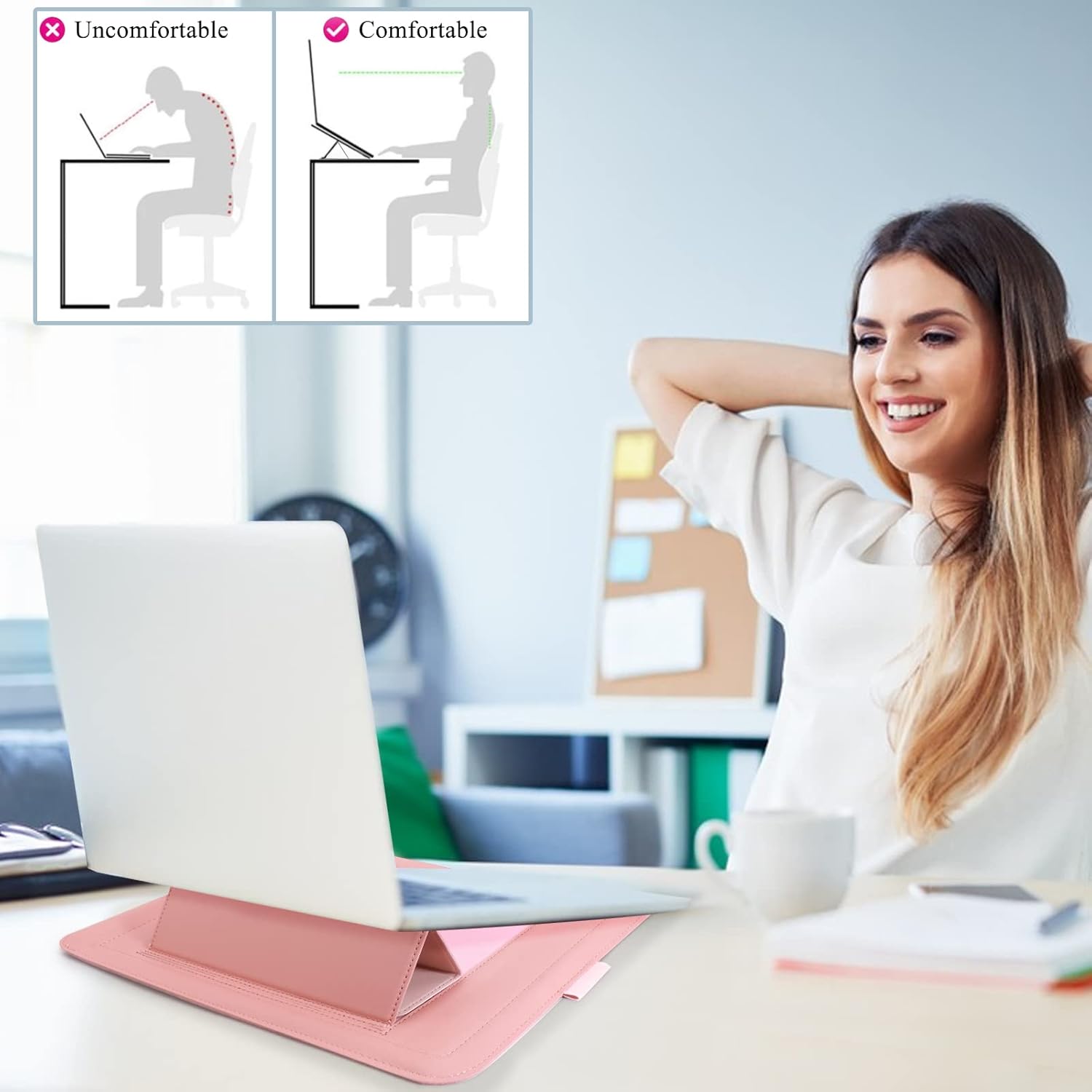 The front is a simple and atmospheric design,the back is a computer stand,convnient for your work and trval needs.