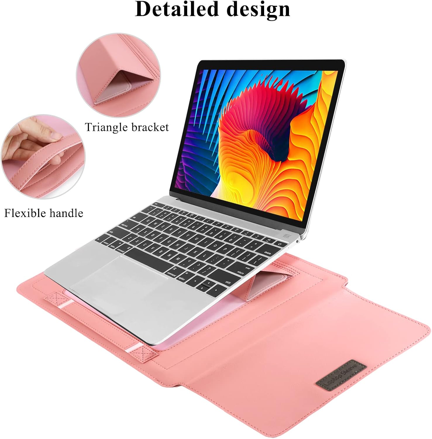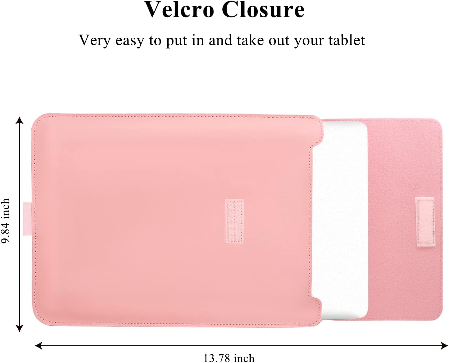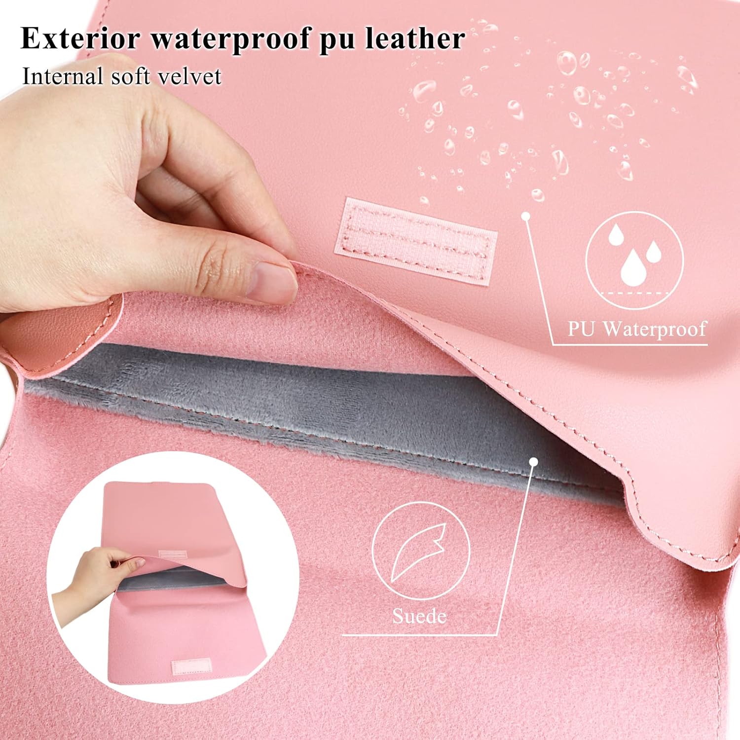 Laotop sleeve external dimension:9.84×13.78x1inch.Material:PU Leather on the surface+microfiber push suede.Colour:Gray/Black/Brown/Pink/Red.