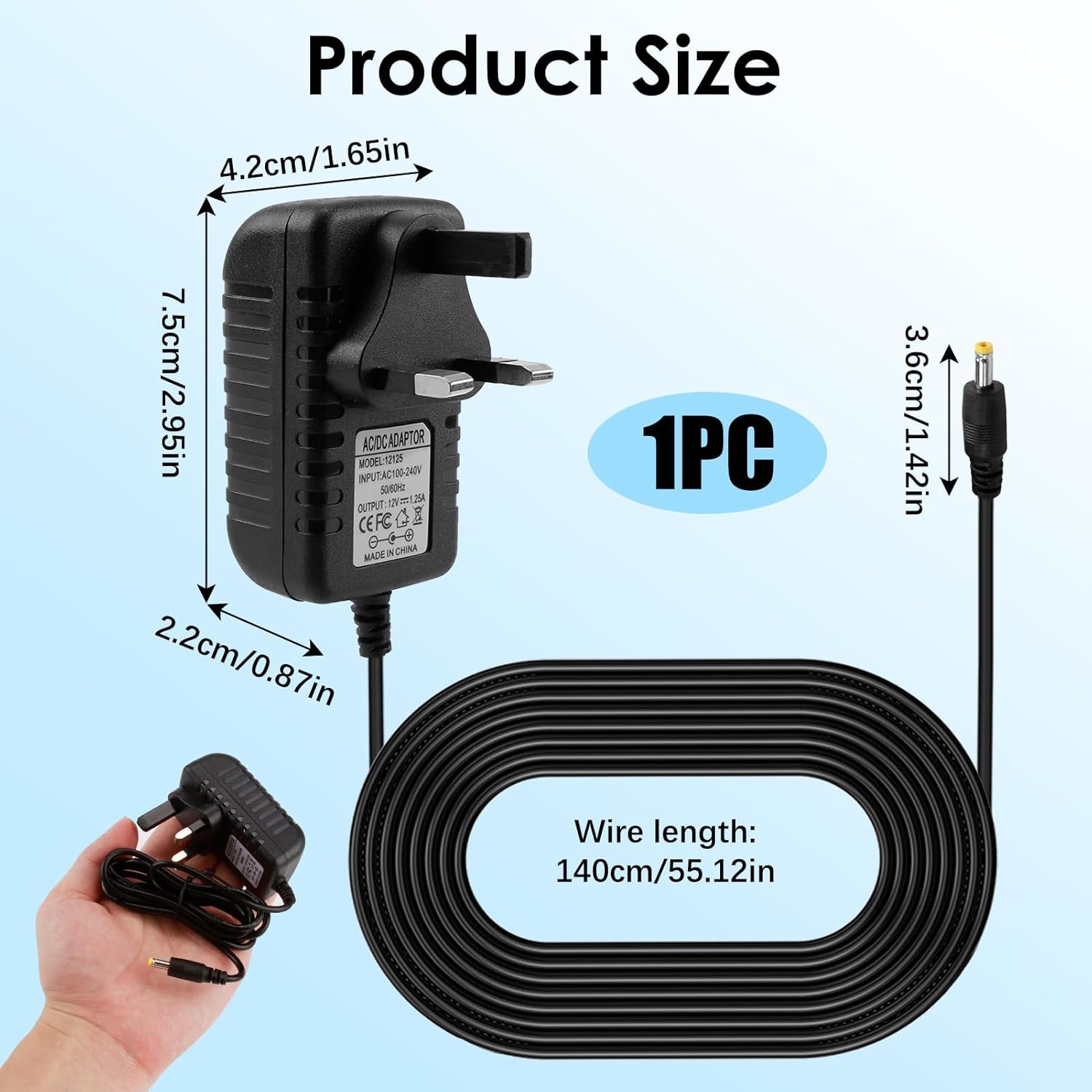 15W Power Supply Charger for Echo Dot 3rd 4th 5th Gen, 1.4M 12V 1.25A Replacement AC Power Adapter Compatible with Echo Dot with Clock Dot Kids Edition Show 5 1st 2nd Gen Spot Pop Fire TV Cube Cord