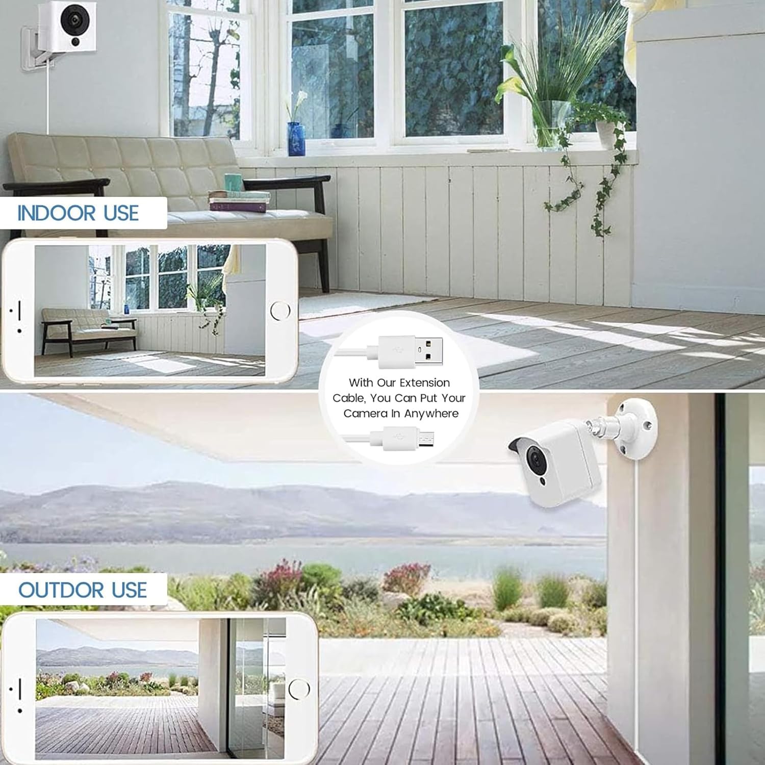 16ft USB to Micro USB Extension Cable, specially crafted to enhance the functionality of your surveillance cameras. Whether you own a Wyze Cam Pan, Oculus Go, Blink, Yi Home Camera, or Kasa Cam Security Camera, this cable is designed for seamless compatibility, providing a reliable power solution.