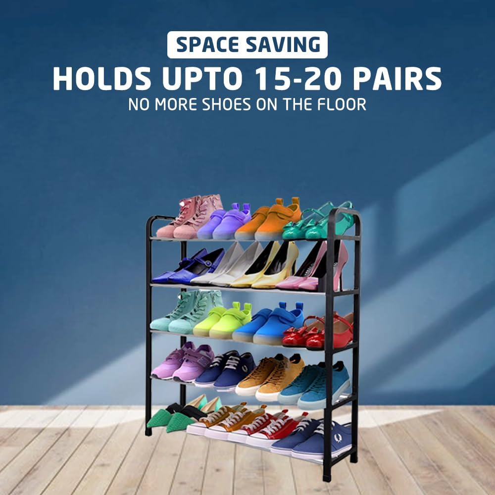 [5-TIER SHOE RACK] Provides space for up to 20 pairs of shoes for men, women and children.