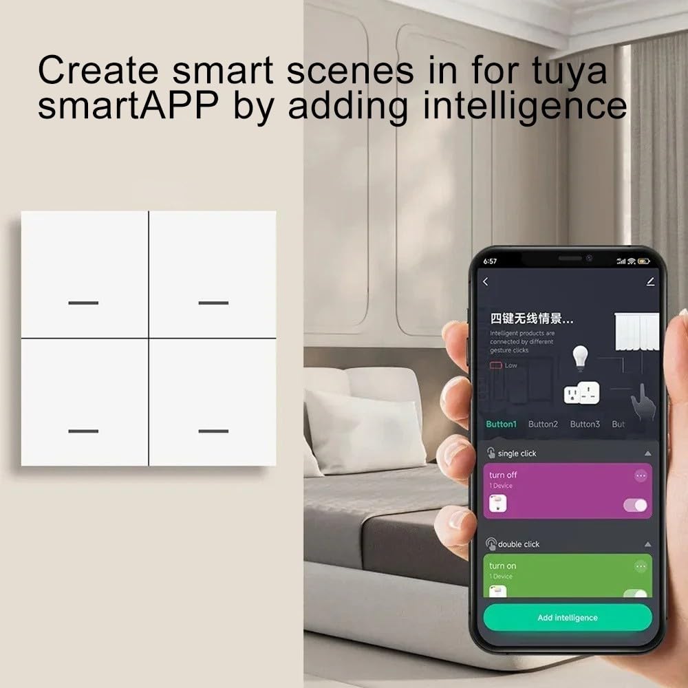 *12 Scene Switch Buttons: With three pairing modes for each button, this 4 gang scene switch can achieve 12 different scenes, such as away mode, home mode, movie mode, and more. No voice is needed, just1 touch on the switch to activate your desired scene.