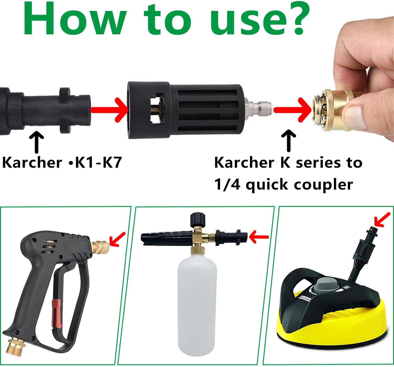Pressure Washer Adapter, 1/4” Quick Connect Power Washer Accessory, Quick Release Connector Compatible with Karcher K1-K7 Series Power Washer