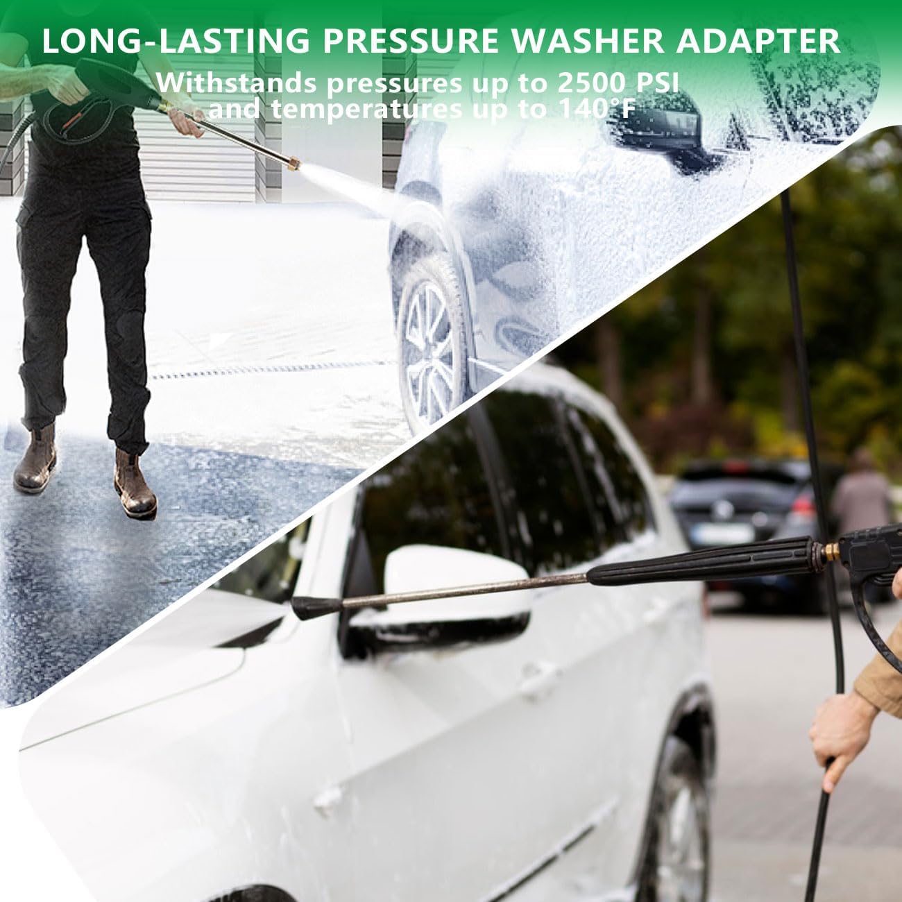 Long-lasting Construction: Crafted from stainless steel quick disconnect plug and tough plastic housing, this pressure washer adapter supports working pressures up to 2500 PSI and withstands temperatures up to 140 ℉, ensuring long-lasting performance.