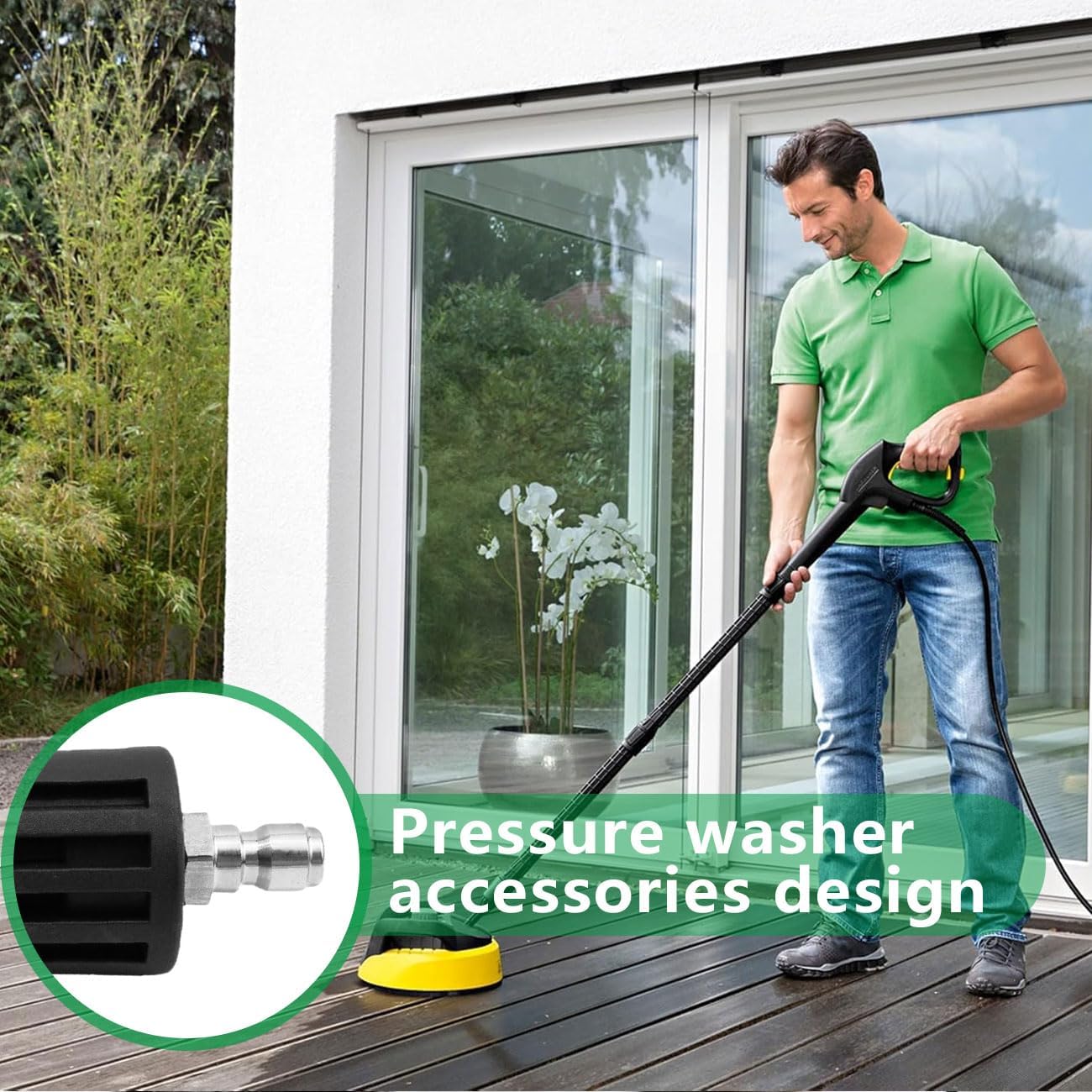 Easy Application: With our pressure washer adapter, you can use universal pressure washer guns or wands (featuring a 1/4″ quick connect) with Karcher pressure washer parts, including popular items like the Karcher T300 surface cleaner and Karcher FJ6 foamer foam nozzle.