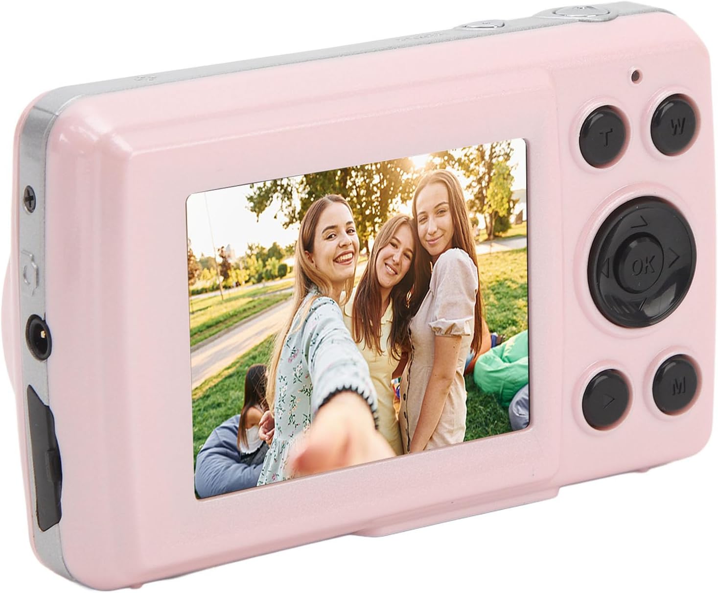 2.4 in Portable Camera 16X Digital Zoom 1080P 16MP Auto Focus Multi Axis Stabilization Digital Camera for Photography Video (Pink)