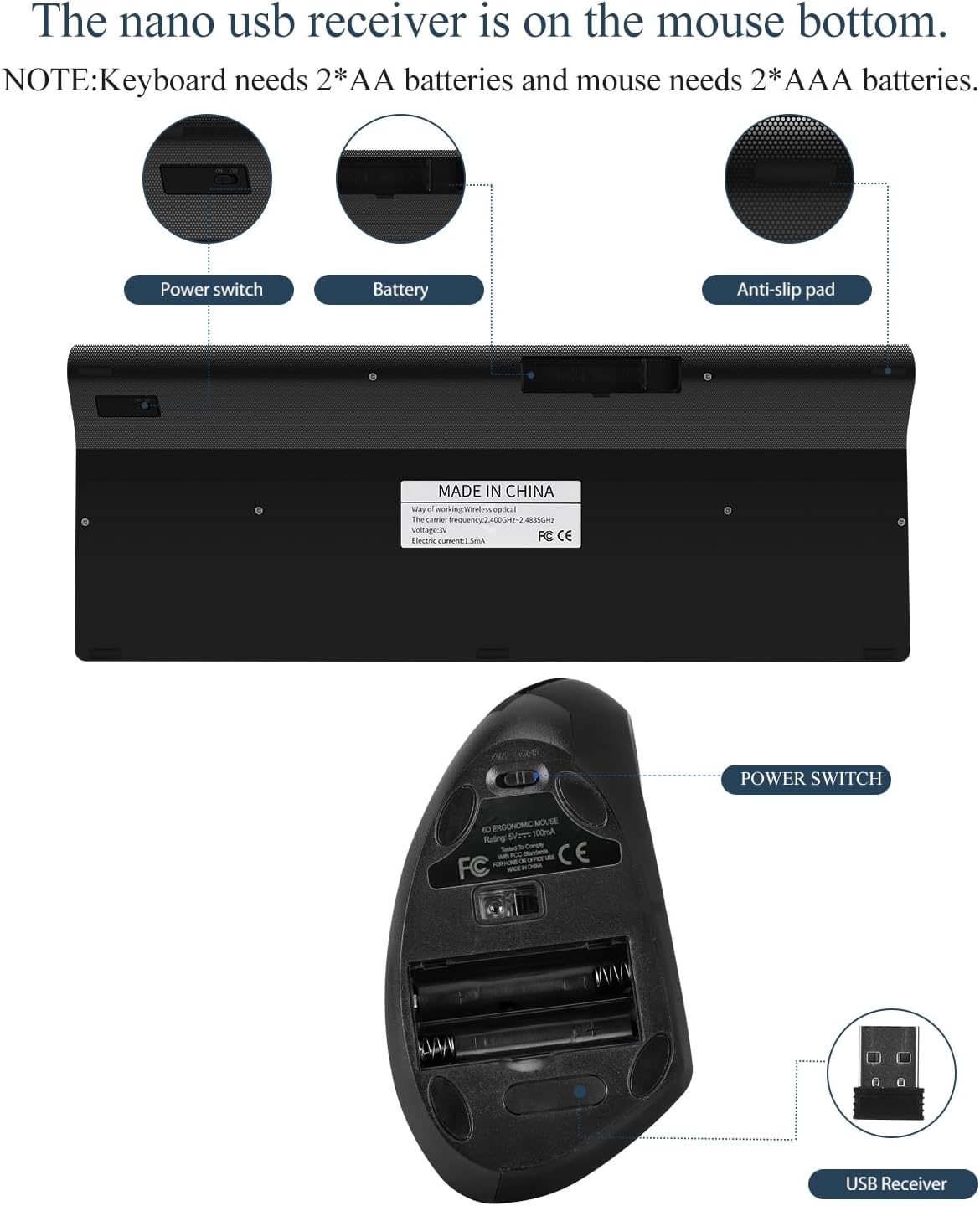 Full size 101 keys keyboard and the precise DPI adjustable vertical mouse, now you can totally handle any task at home/office. Enjoy its great convenience and improve your work efficiency with this amazing wireless keyboard and vertical mouse combo.