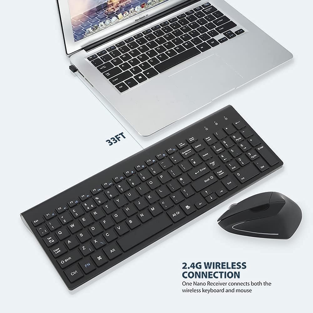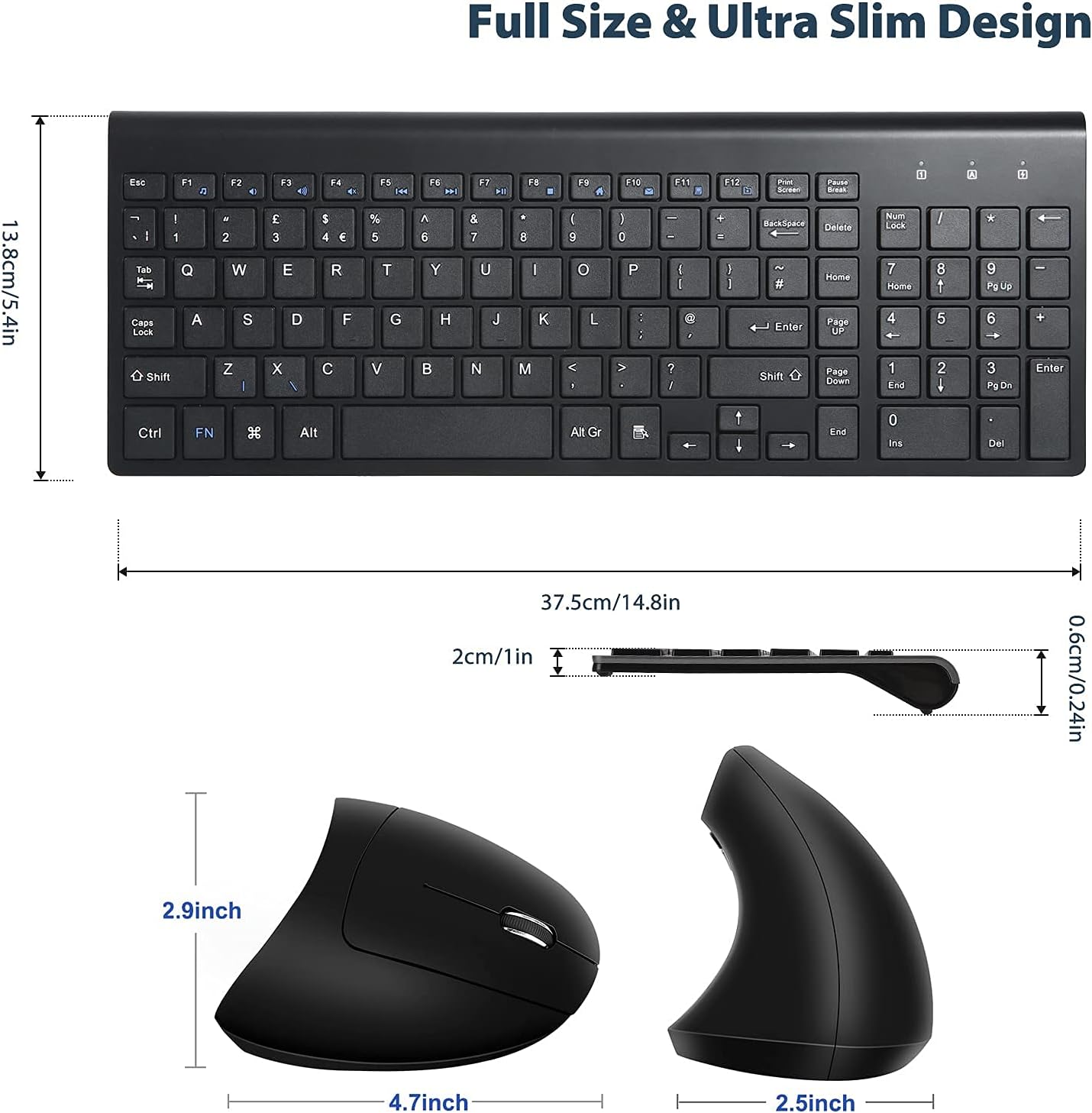 2.4GHz Wireless Vertical Ergonomic Mouse and Keyboard Combo Ultra-Thin Portable Size for PC Desktop Computer Laptop Mac Tablet