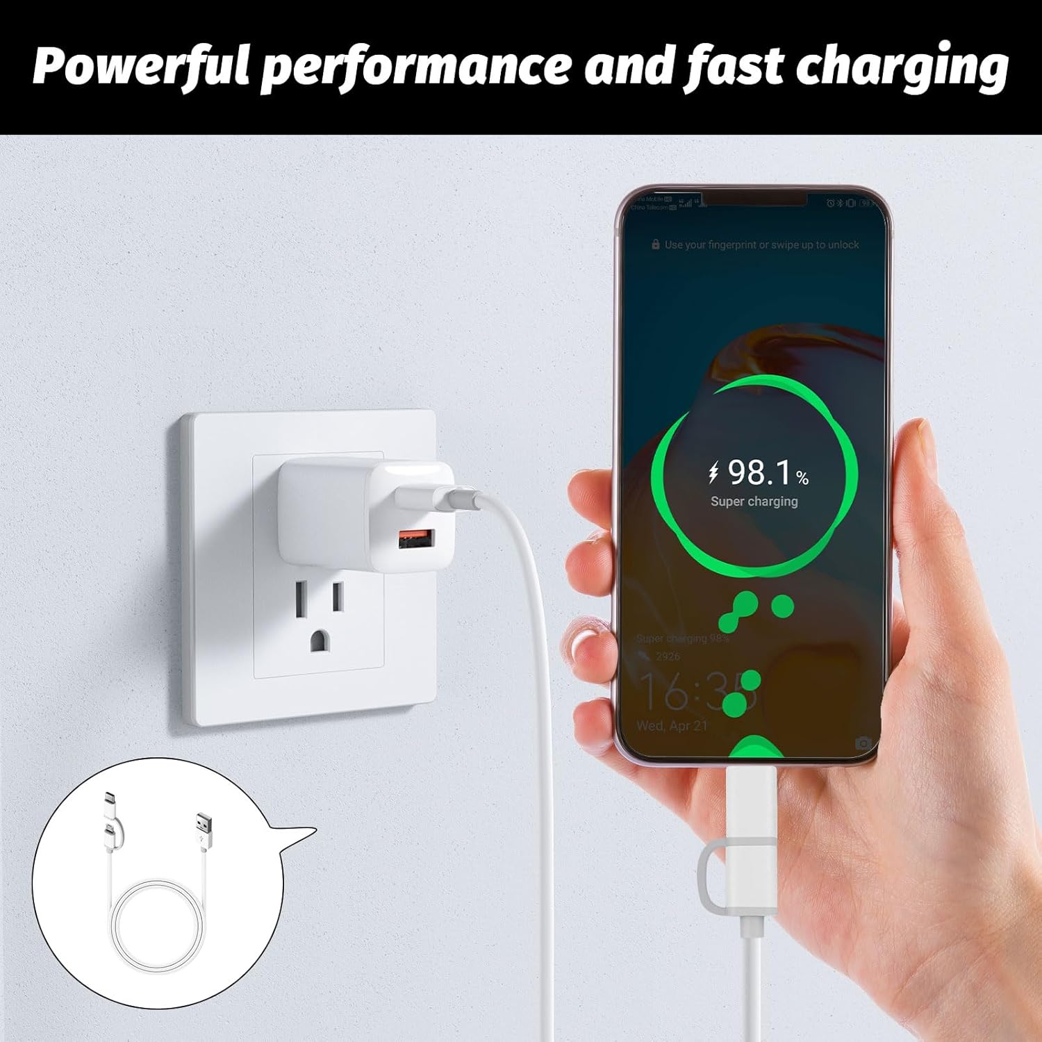 High quality materials: The 2-in-1 USB C charger cable is made of high-quality TPE and aluminum foil, which has high flexibility, is not afraid of pulling, and is resistant to bending. The plug is made of anti-oxidation alloy and contains 82 0.10 copper wires. It has functions such as overheat protection, overvoltage protection, and overcharge protection to ensure the safe charging of the equipment.