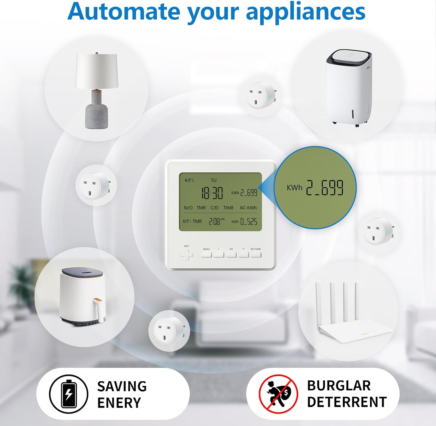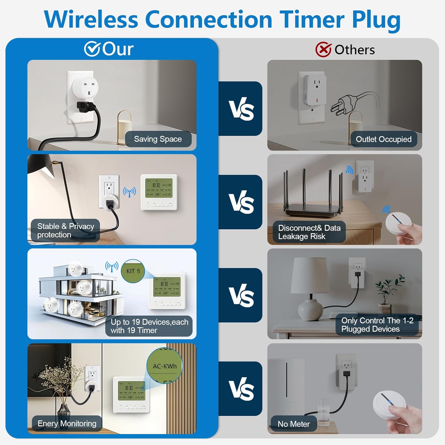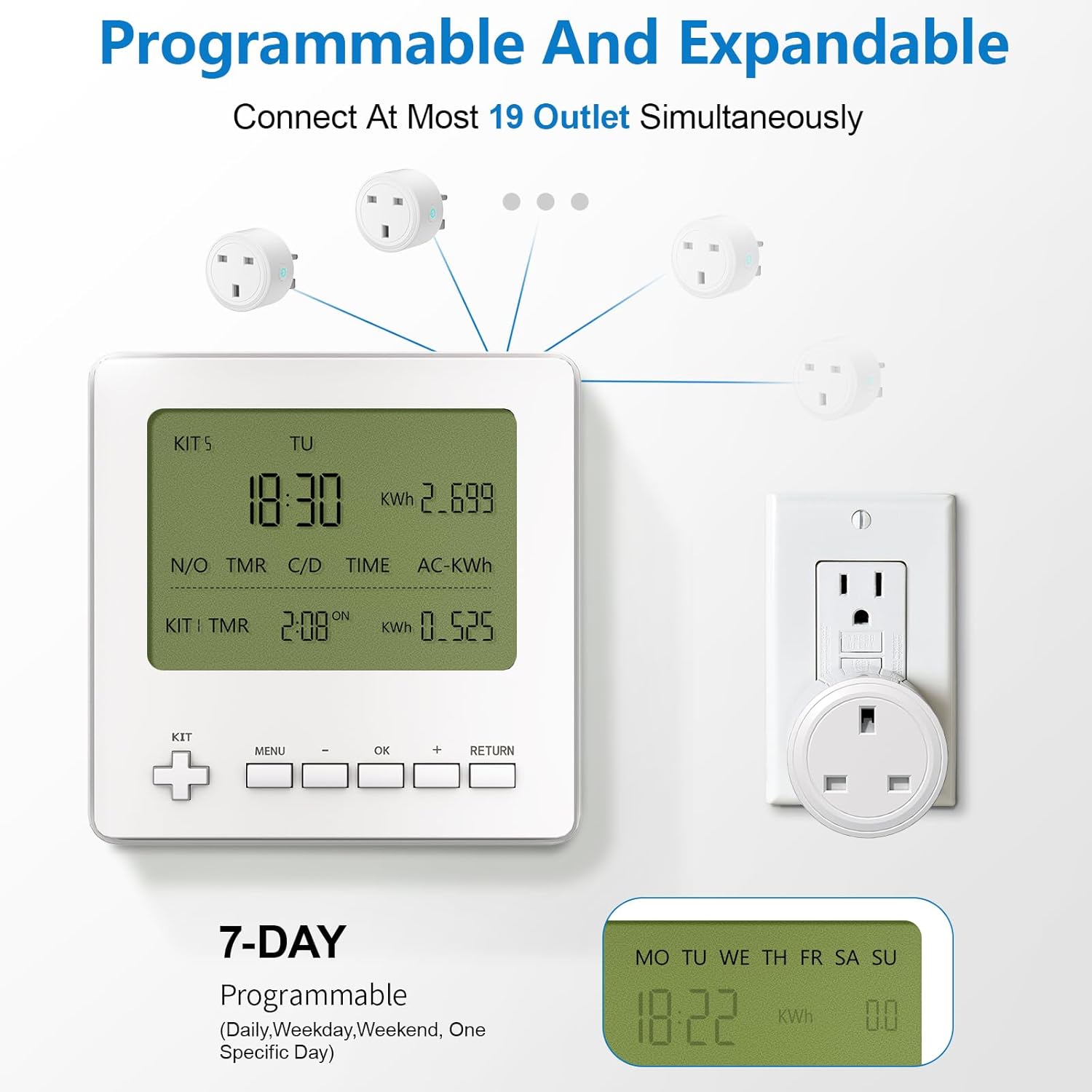 13 reviews for 2 Pack Adapter Plug Socket, Works with Wothfav Smart Timer Plug Monitor ETK-07, Plug-in Switch for Light & Home Appliance