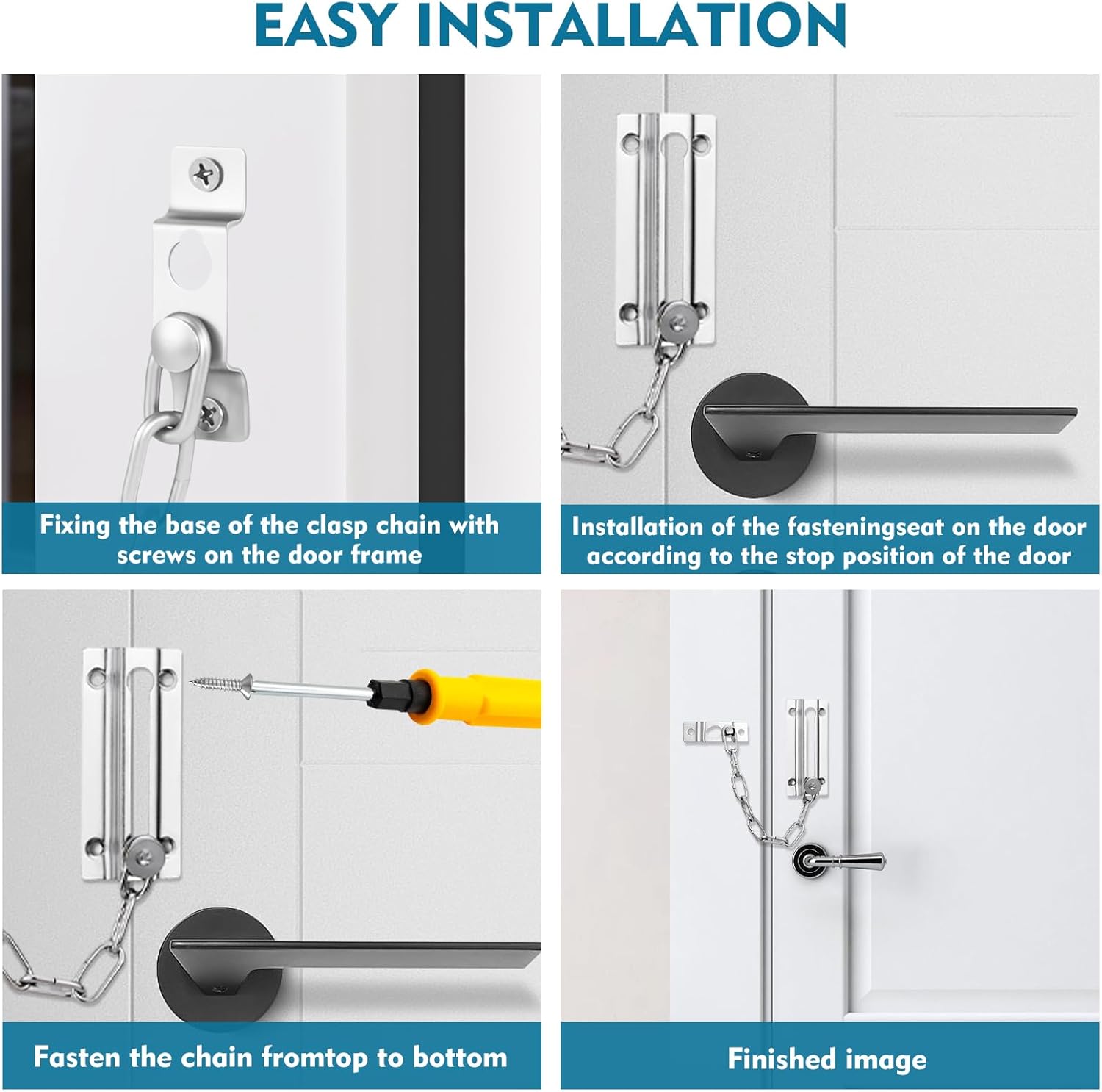 [Easy Installation]: This door lock comes with all the necessary accessories, including 6 rust-resistant screws, allowing you to easily install the door chain lock on your front door or interior doors for added security