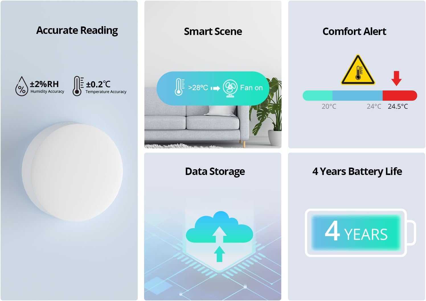 13 reviews for 2 Pack SONOFF SNZB-02P Zigbee Temperature and Humidity Sensor, Smart Temperature Sensor with Comfort Alarm, Zigbee Hygrometer Compatible with Alexa/Google Home/HA/IFTTT, Zigbee Hub Required.
