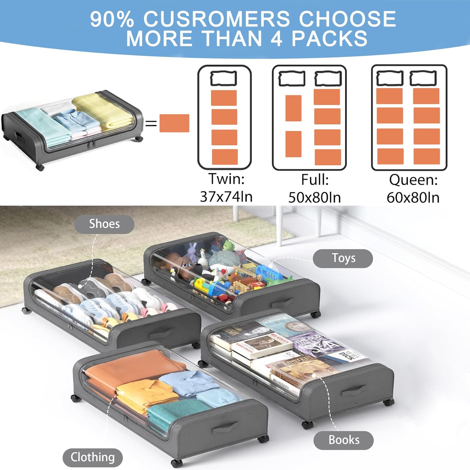 【Wide Application & Thoughtful Handle Design】The bed storage comes with tools and can be installed in just 15 minutes. Under bed shoe organizer is suitable for storaging seasonal clothes, bedding, Blankets,comforters,shoes, toys, books,bags,off season duvets,etc. Meanwhile, the under bed organizers and storage with 2 handles on left and right side, easy for you to pull it out from under the bed or lift, it is a must-have for bedroom organization!