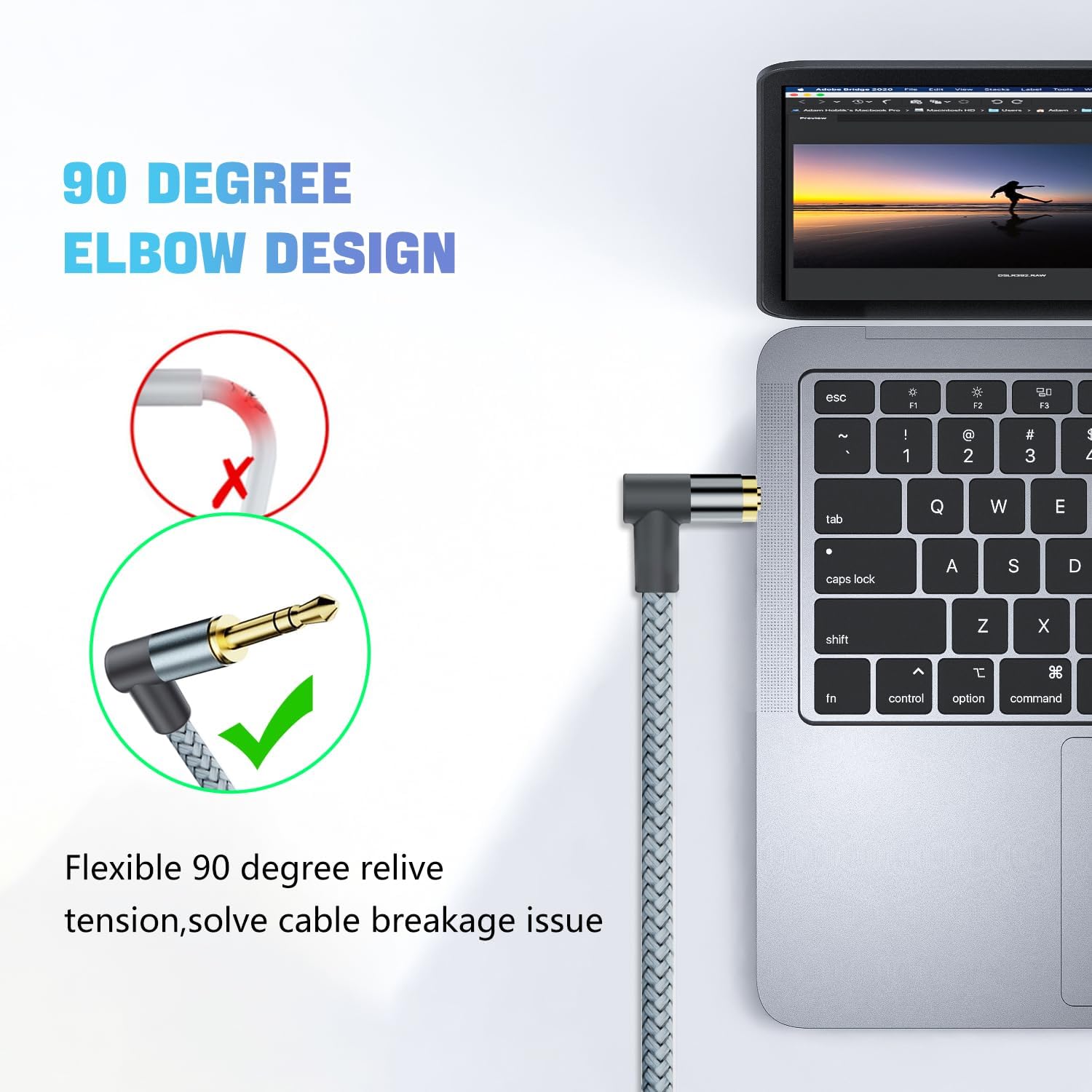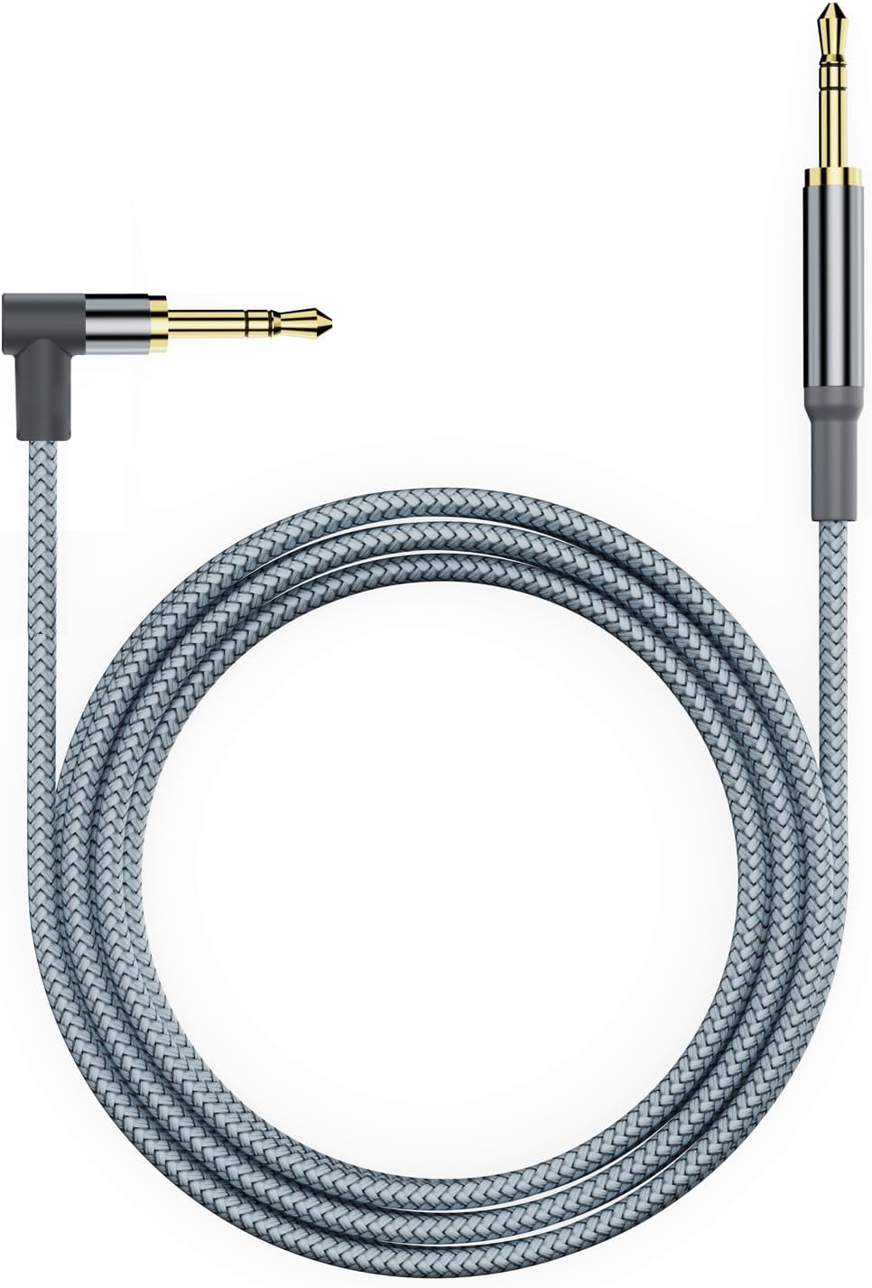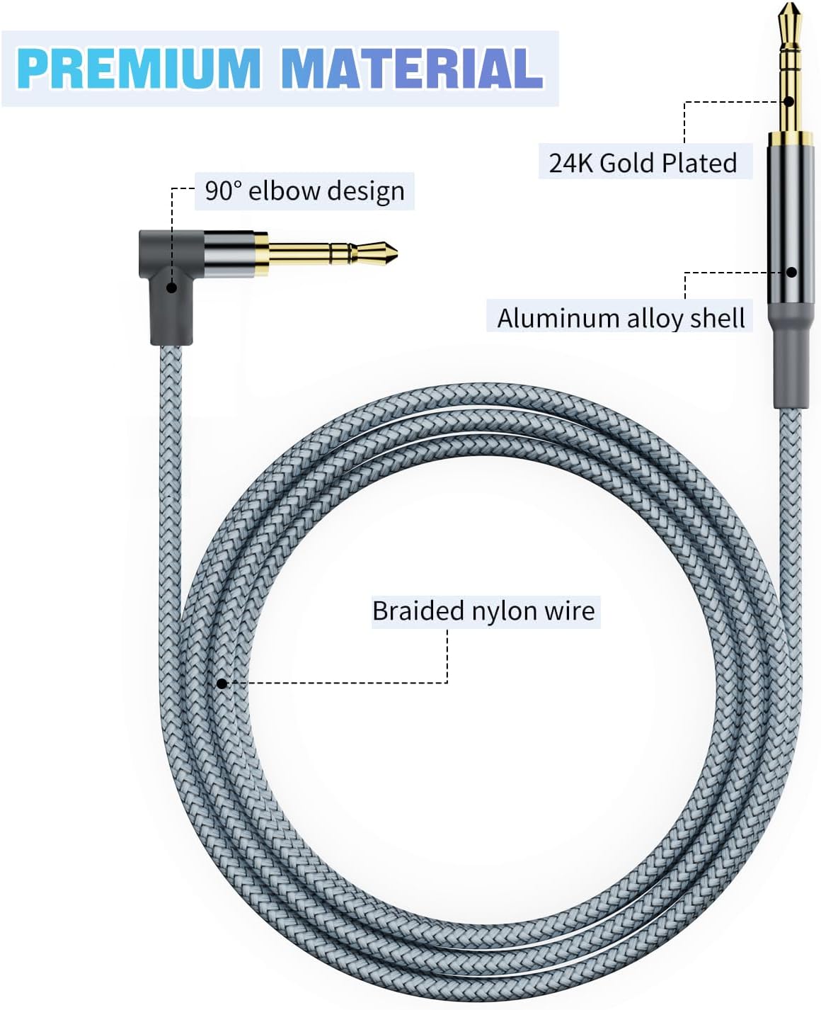 3.5mm to 3.5mm Aux Cable,1.2M Audio Aux Jack Adapter 90 Degree Nylon Braided Male to Male Auxiliary Cord Hi-Fi Lead Stereo Headphone Mini TRS Compatible with Car,Speaker,iPod iPad,Sony,Echo Dot,Beats