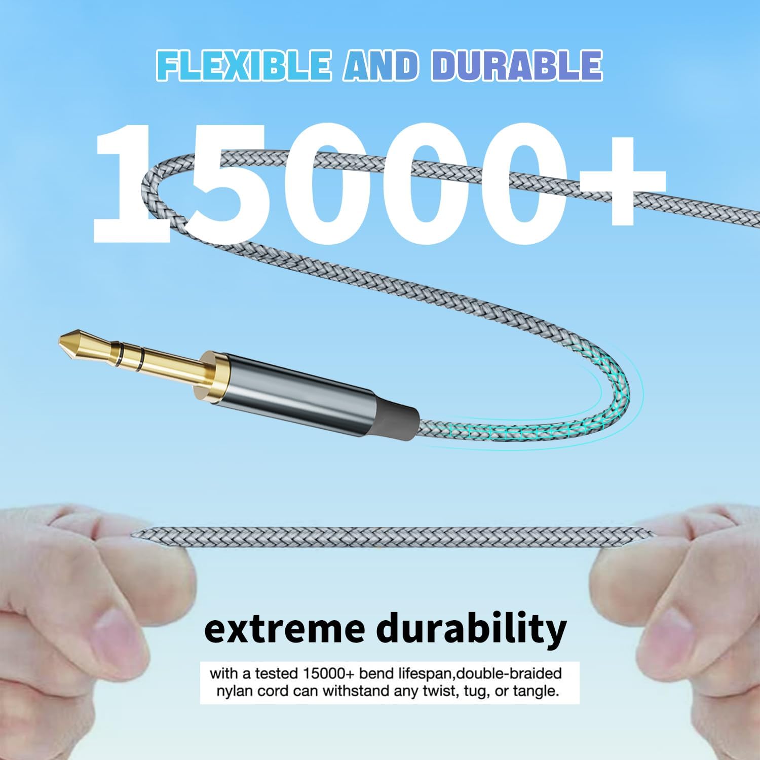 【Nylon Braided Cable 24K Gold-plated Connectors Robust Aluminum Shells Improved Durability】Our 3.5mm aux cable with polished gold-plated connectors ensure reliability and eliminate signal loss and noise possible,provide stable & undelayed audio transmission.Ultra durable and tangle-free with an 15000+ ultra-durable bend lifespan nylon braided cable aux audio jack cable.3.5mm audio cable’s aluminum housing is corrosion and oxidation resistance.
