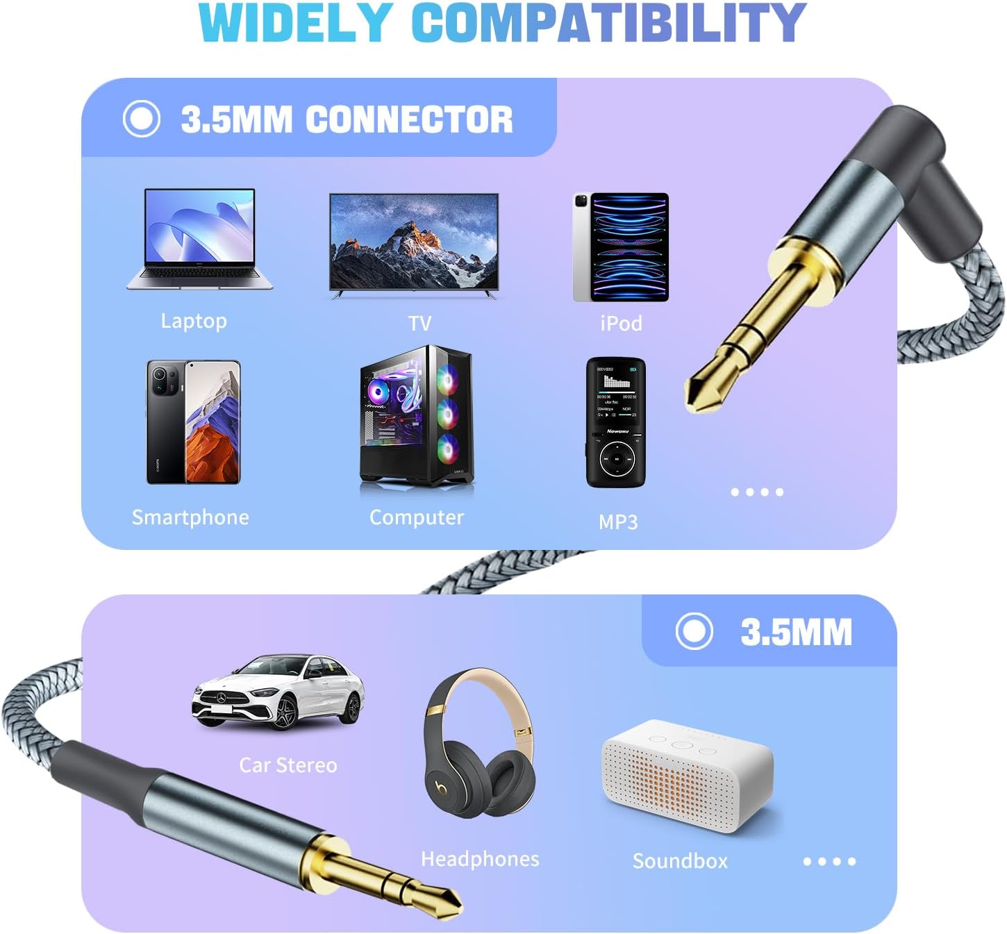 【Plug & Play 90 Degree Right Angled Design】Our 3.5mm stereo cable with right angled connector allows you to connect to tight spaces and hard to reach areas where a normal straight connector is unavailable. Lightweight allows you to carry it around and put it in any mini bag where you can put your phone without fear of damage to our adapter cable because of bending.Just plug and play,requires no software,drive and complicated installation.You can unblock the world of audio for anytime anywhere in a easy way.