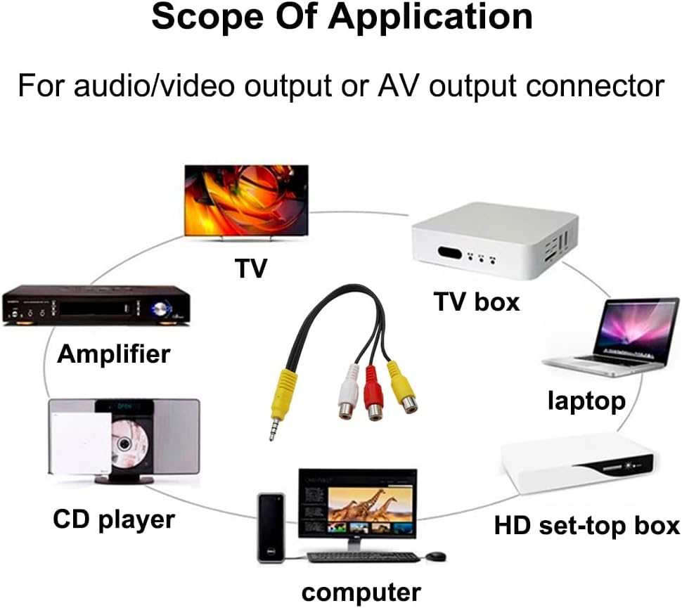 13 reviews for 3.5mm to 3RC.A Input Adapter, Video AV Component Adapter Cable Replacement, 3 RC.A to AV Input Adapter, RC.A Conversion Cable Compatible with TCL Samsung, Sony and More TV devices