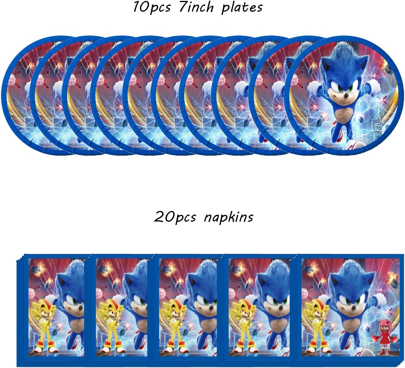 32 Pack Birthday Party Tableware Set, Decoration for Kids With 1 Tablecloth, 10 Plates, 20 Napkins, 1 Banner Party Favor Supplies