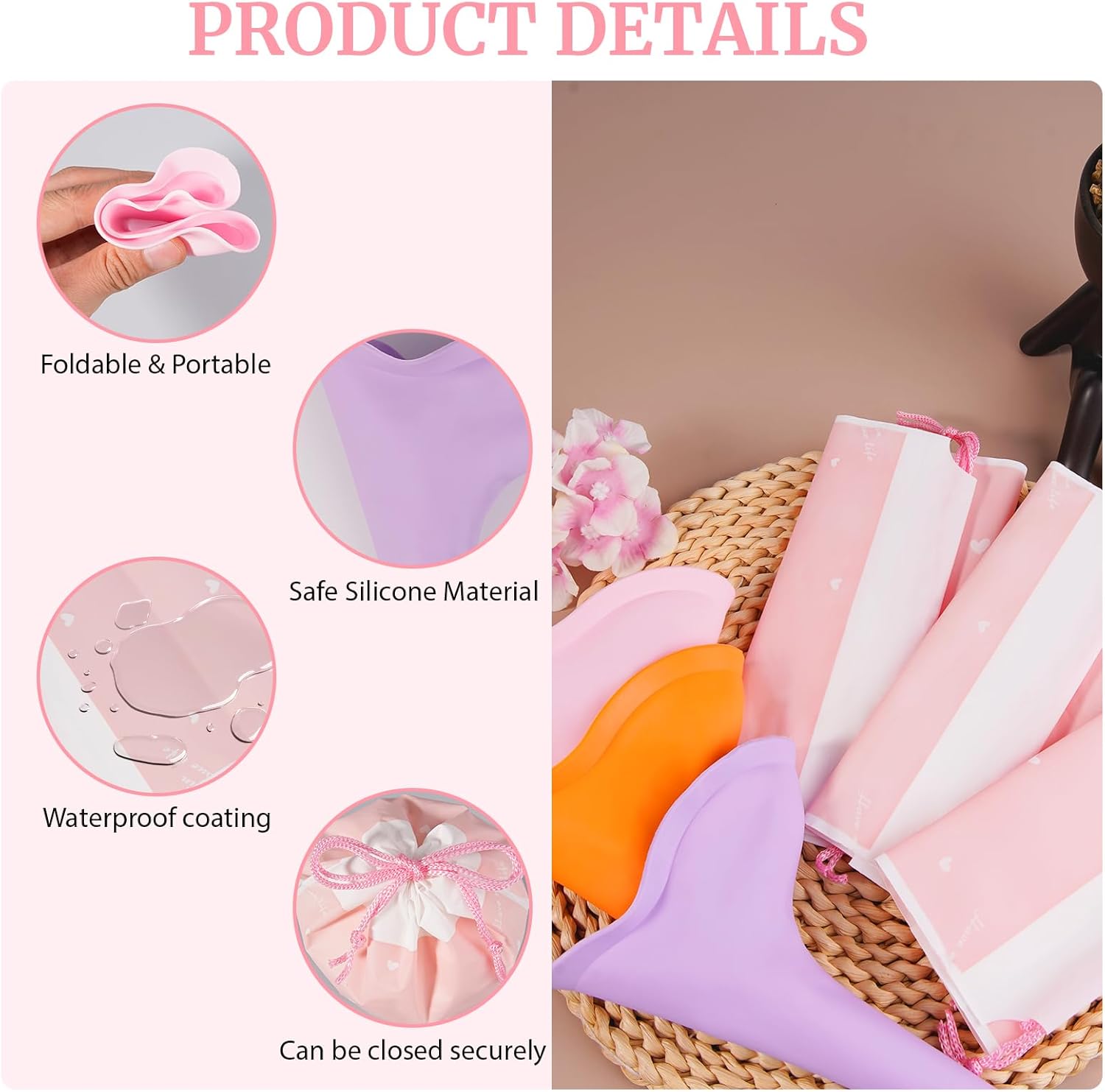 3Pcs Female Urination Device Female Travel Urination Device Reusable Silicone Urinal Funnel for Women Portable Urinal for Travel Camping Hiking with 3pcs Waterproof Storage Bag