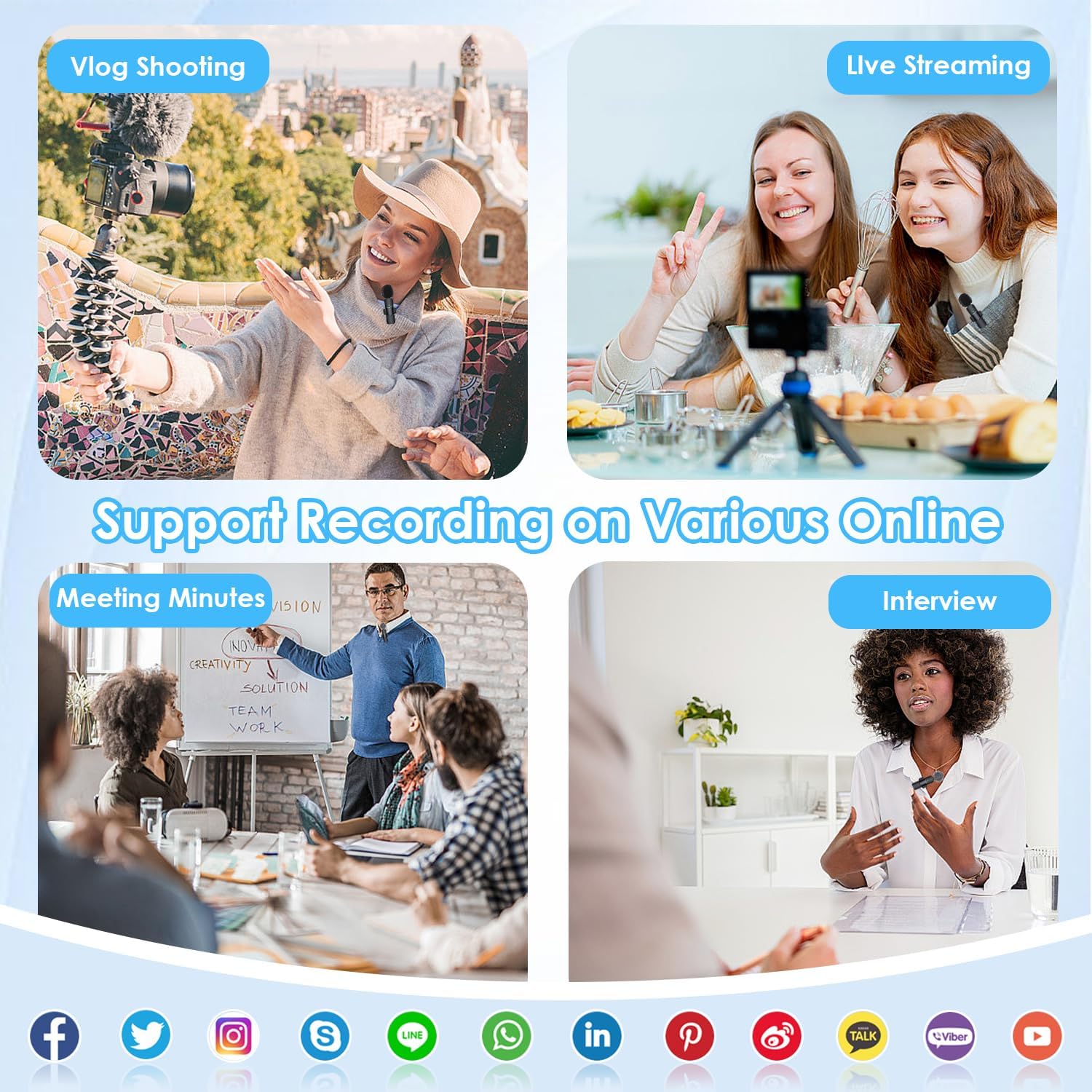 Full Compatibility : The upgraded wireless microphone comes with a 3 in 1 universal receiver, eliminating the need to replace multiple individual interfaces or interface cables. Compatible with android smartphones, iPhone, iPad, laptops, personal computers, camera etc. Mini microphone is suitable for blogging, interviewing, live streaming, blogging, podcasting, youtube, instagram, TikTok