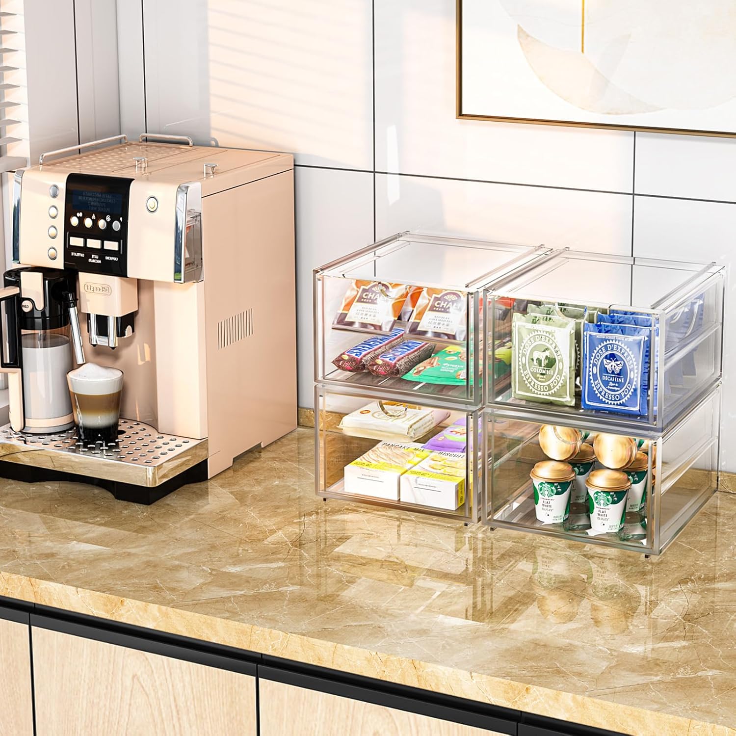 13 reviews for 4 Pack Stackable Storage Drawers, Acrylic Cosmetic Drawer, Clear Desk Accessories, Latest Model Dustproof Drawer Storage for Dresser, Bathroom