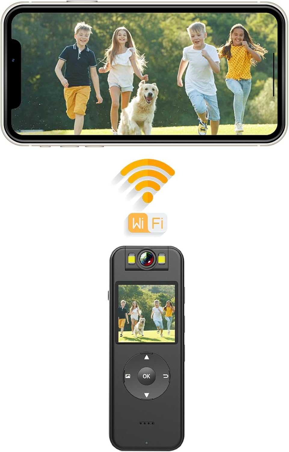 4K Body Cam, Wearable Body Camera, 4K Ultra HD Sports Camera Portable, Back Clip Camera with Fill Light. Small DV Camera Recorder WIFI Connection for Outdoor Motorcycle Riding