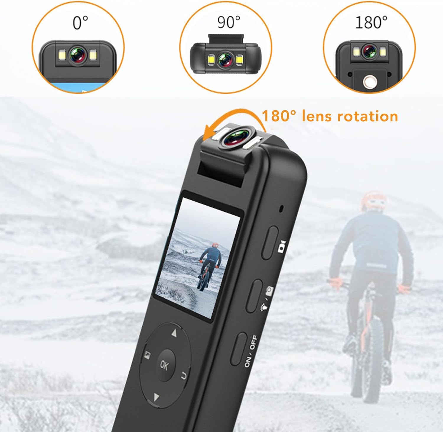4K ULTRA HD CAMERA: Body cam is equipped with ultra HD image sensor, using large aperture, improve clarity while picture quality is richer, more detail retention, 180 degree lens rotation, multi angle adjustment shooting without leaving dead corners