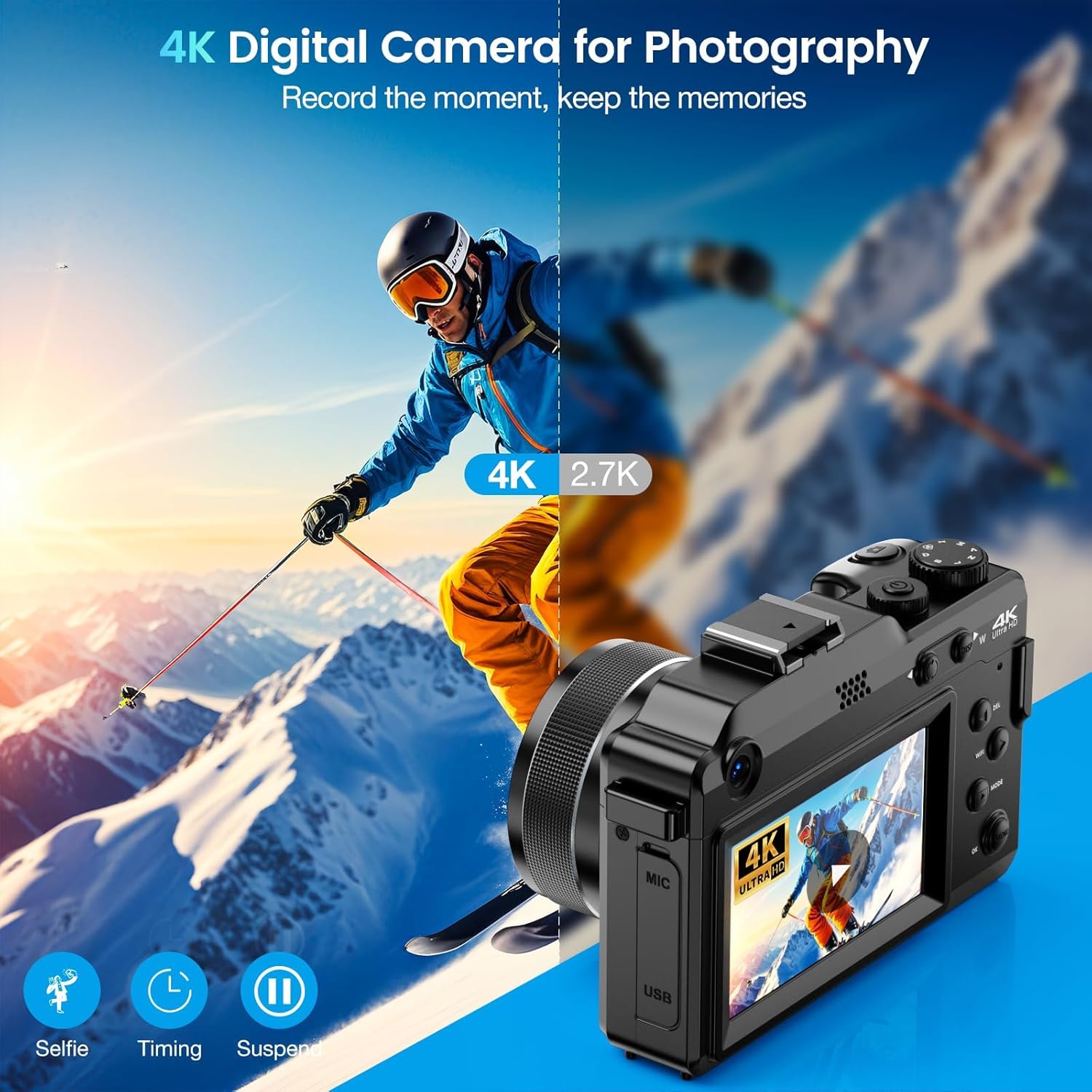 【Perfect Gift and Service】The 4K digital camera is easy to operate, perfect for beginners, amateurs, teens, and seniors, and can meet all your daily shooting needs with ease. This point-and-shoot digital camera is an ideal gift for lovers, friends, children, or parents for Valentine’s Day, Thanksgiving, Christmas, or a birthday! Share your happiness with this digital camera. If you have any issues while using this 4K camera, please feel free to contact us, we will get back to you within 24 hours.