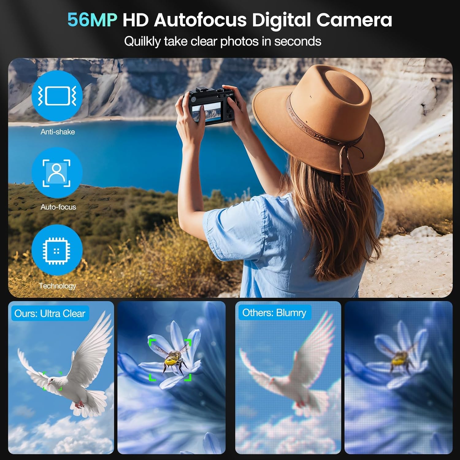 【4K 64MP & Autofocus Digital Camera】This digital camera for photography can be used for making 4k videos for YouTube features with 4K video resolution and capture ultra HD 64MP images, record every moment with high-quality images or video. Autofocus features make this 4k digital camera for beginners who want to quickly take HD photos, and take HD text or portraits up close without much work. Perfect for indoors outdoors.