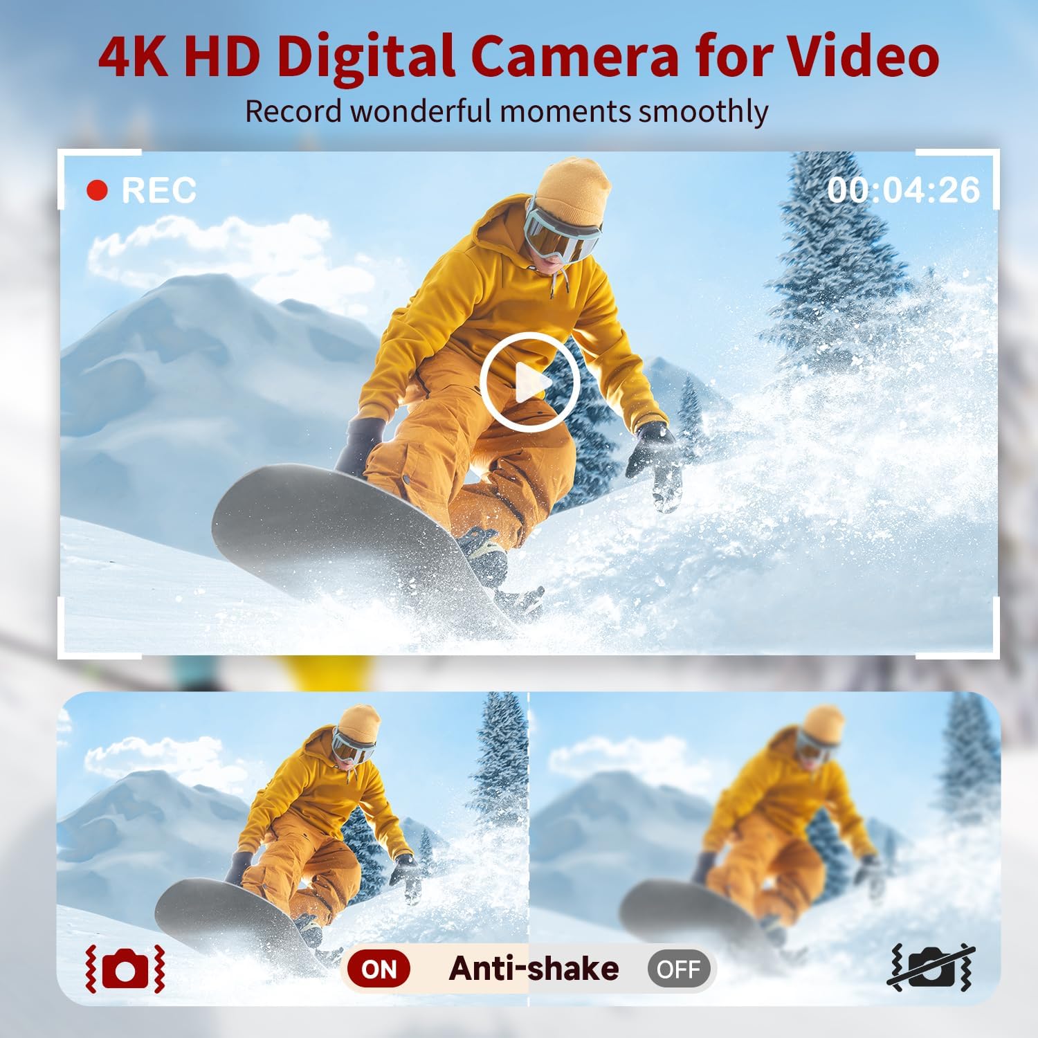 【Ultra HD 4K Digital Camera for Vlogging】Powered by the latest CMOS chip, this digital camera delivers stunning 48MP photos and crisp 4K video. A built-in flash ensures brilliant shots in low light, indoors or out, while 6-axis anti-shake keeps your sports, portrait, or landscape photos steady.