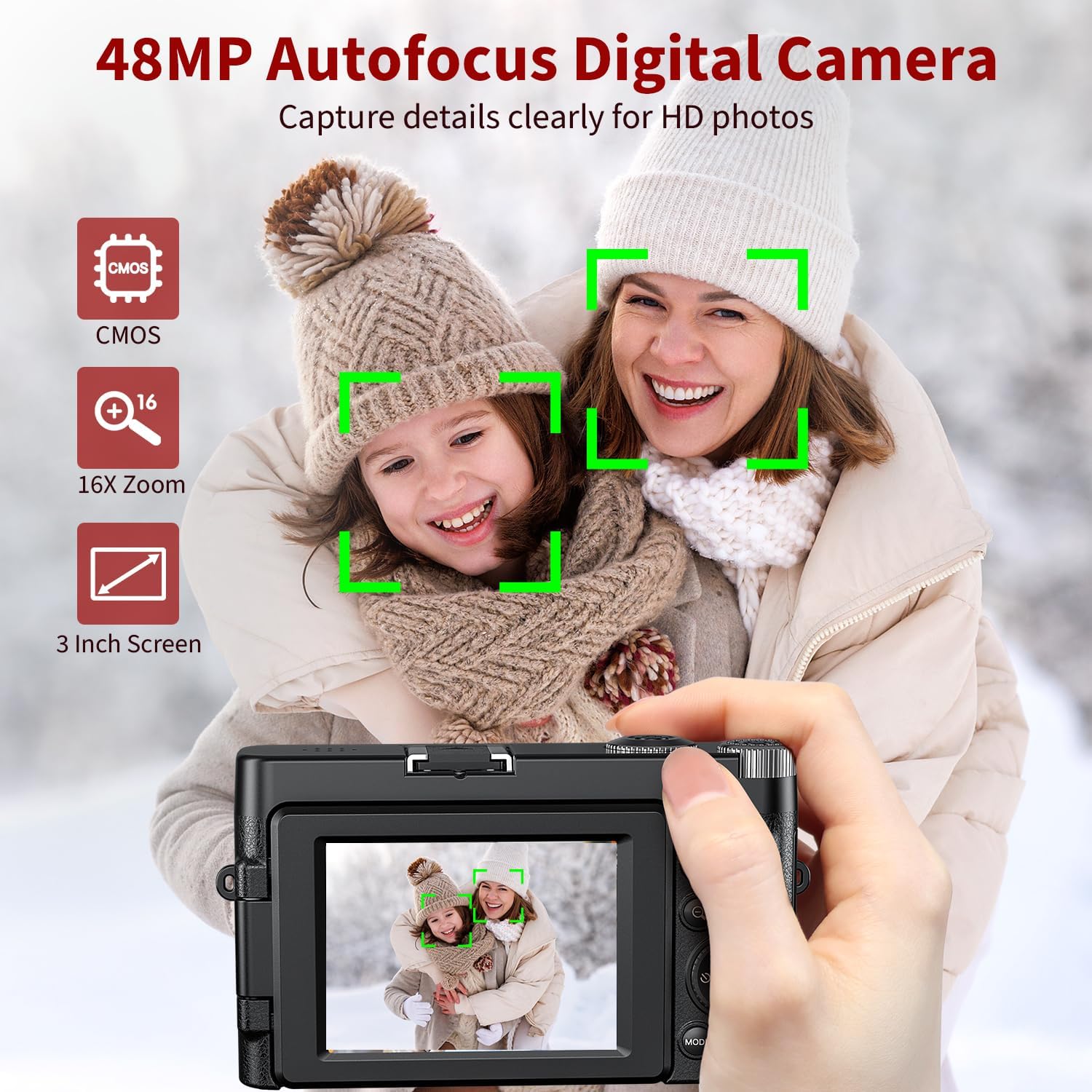 【48MP Autofocus Camera for Photography】With autofocus, this digital camera captures every detail in sharp 48MP clarity across its 16X zoom range. The built-in flash and fill light make night photography a breeze, brightening dark scenes effortlessly. Whether snapping distant landscapes or close-ups, every photo feels cinematic.