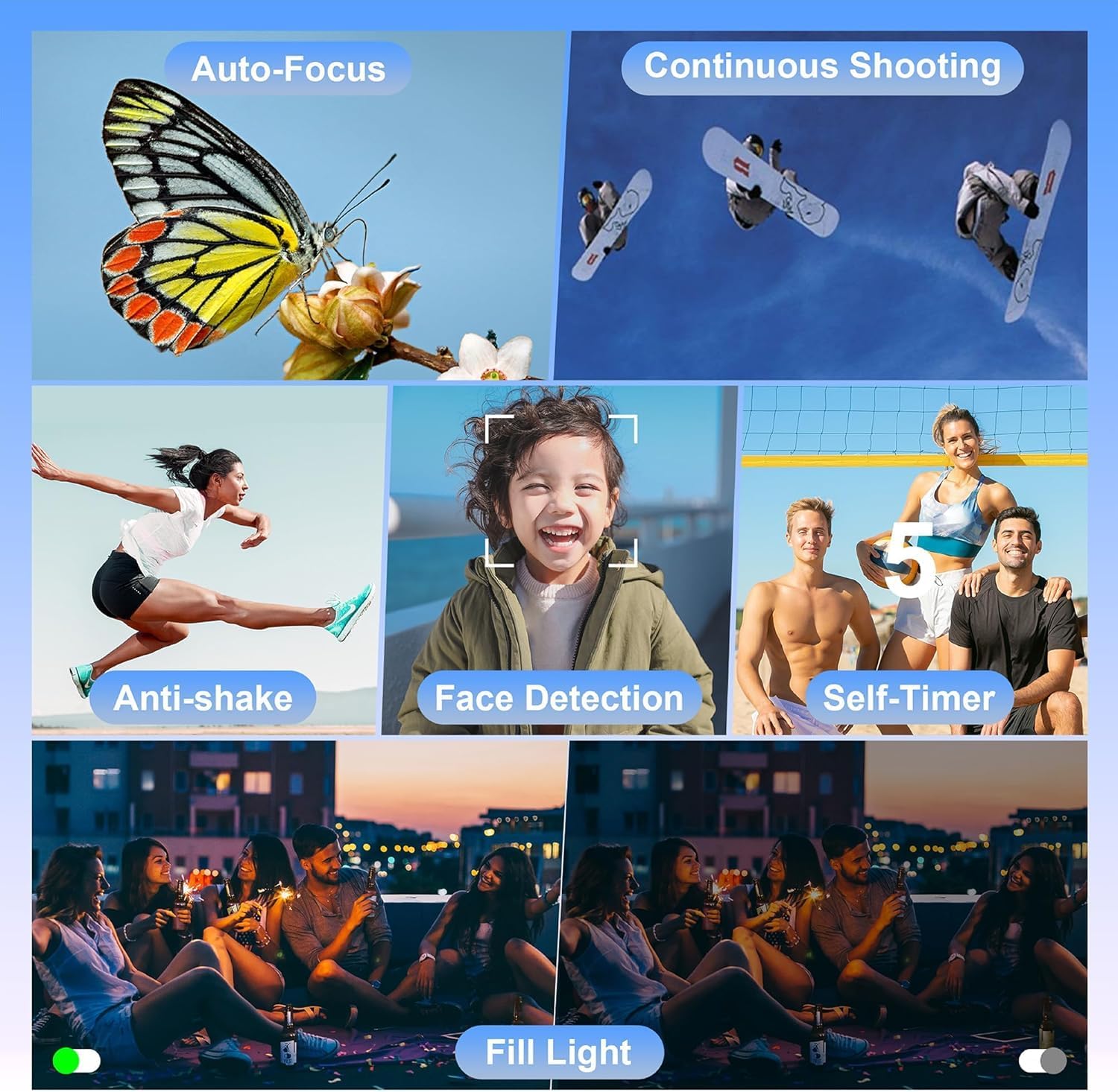 【Front and Rear Digital Camera】The front and rear camera meets self-vlogging and quick take selfie photos with friends.Capturing the long distances and macro scenery clearly with 18X digital zoom.Support to transfer photos by Wifi or USB C cable to pc