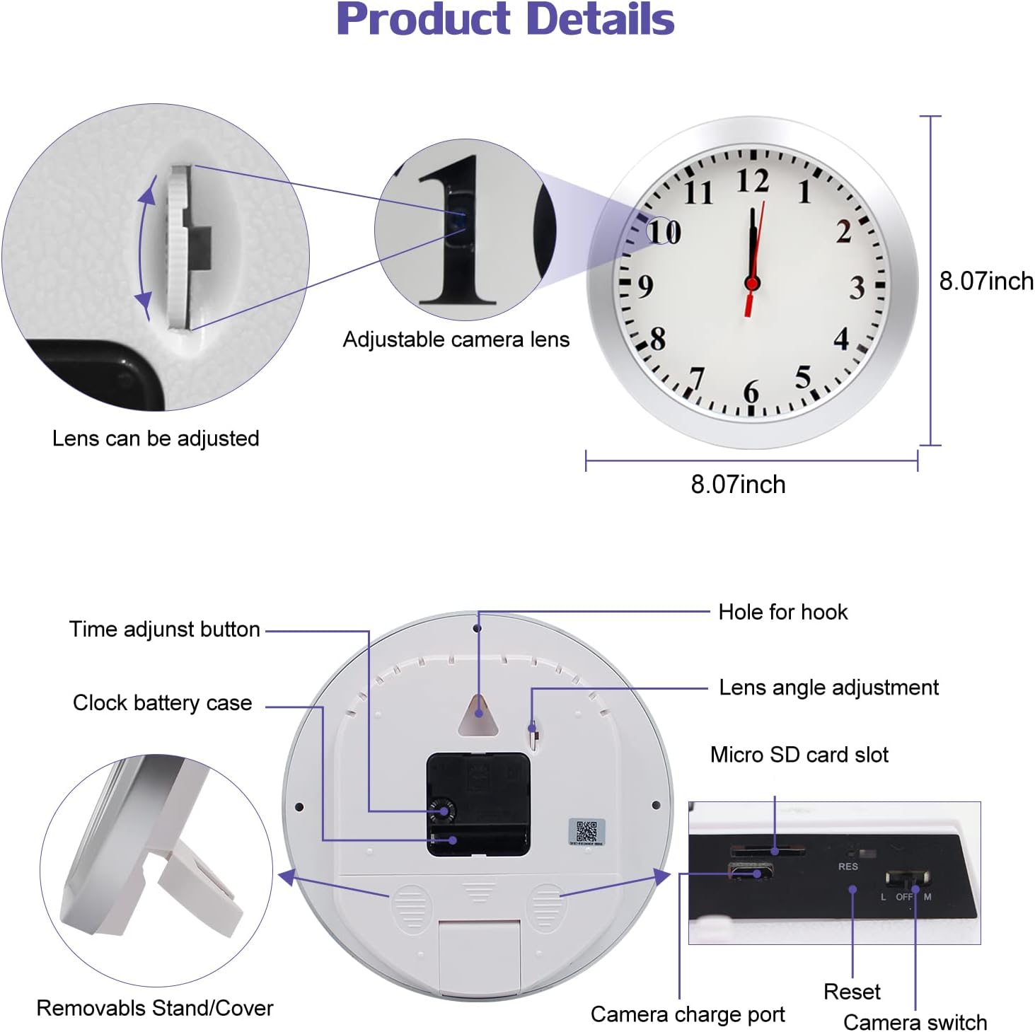 8 reviews for 4U Hidden Camera Wall Clock 1080P HD Hidden Spy Clock Camera, Home Security Nanny Cam for Motion Detection/Loop Recording, No APP Camera
