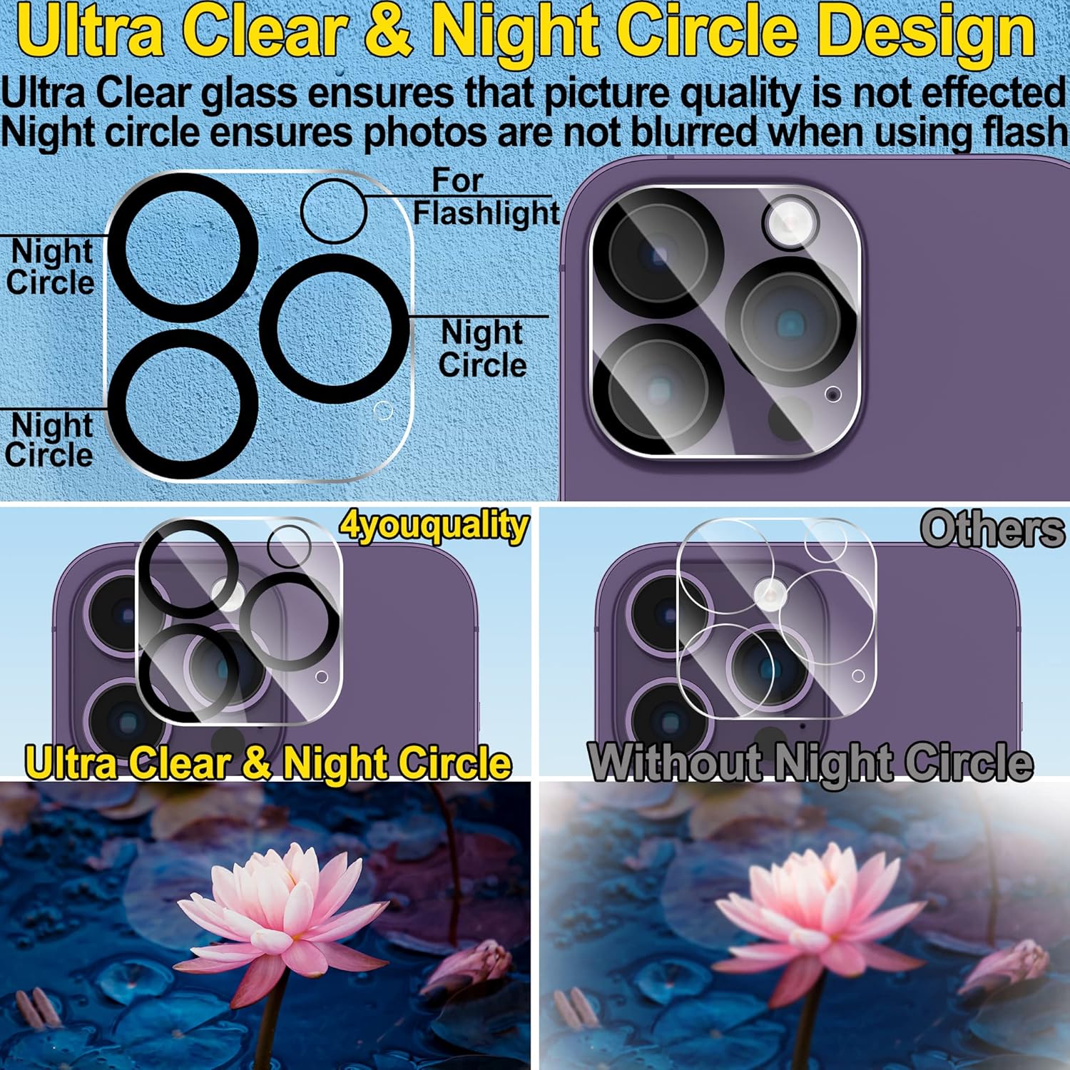 4youquality [3-Pack Camera Lens Protector for iPhone 14 Pro Max (6.7-inch) & iPhone 14 Pro (6.1-inch), 9H Tempered Glass, [LifetimeSupport][Anti-Scratch][Does Not Affect Night Shots]