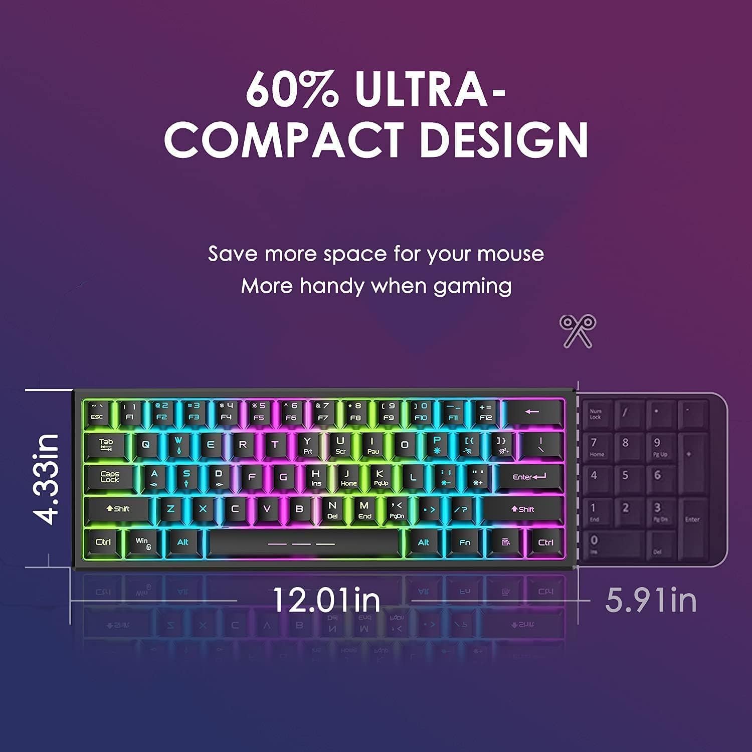 【Well characterization】- The keyboard is made of high-quality ABS material and an ergonomic shell to ensure long-term use and comfort without fatigue. With FN key combination and anti-ghosting function. 60% Compact set save space to sit on your desk and leave more room for your mouse movement. It can support Windows serise pc cpmputer laptop, etc.