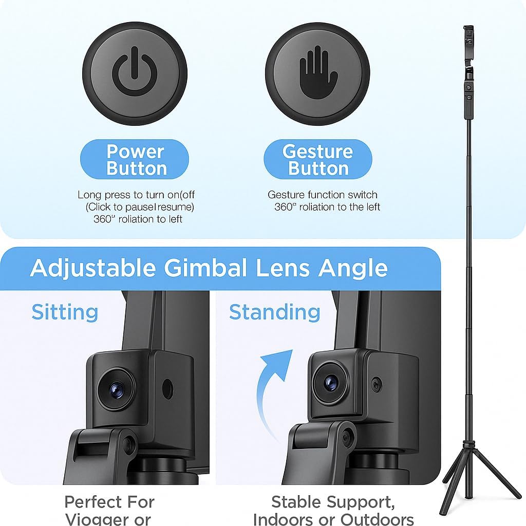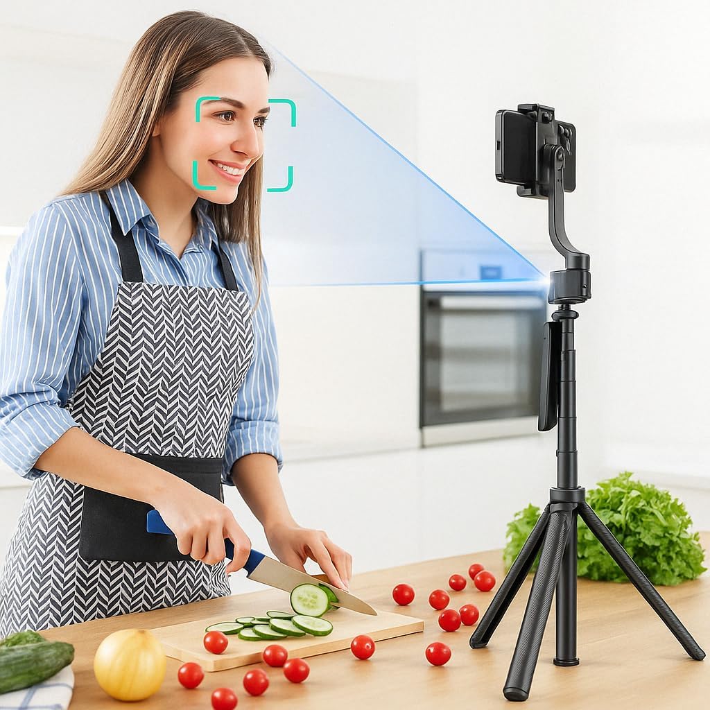 ✅ AI Face Tracking & Gesture Control: This tripod for iPhone features an advanced AI chip with face tracking technology, ensuring smooth and hands-free video recording. Use simple gestures to start, switch targets, or pause tracking—perfect for content creators.