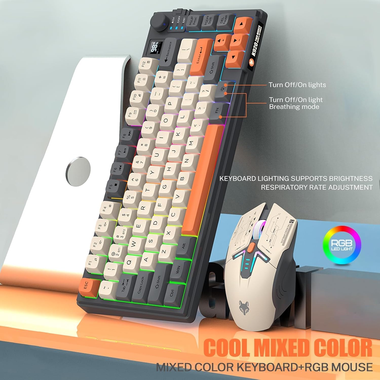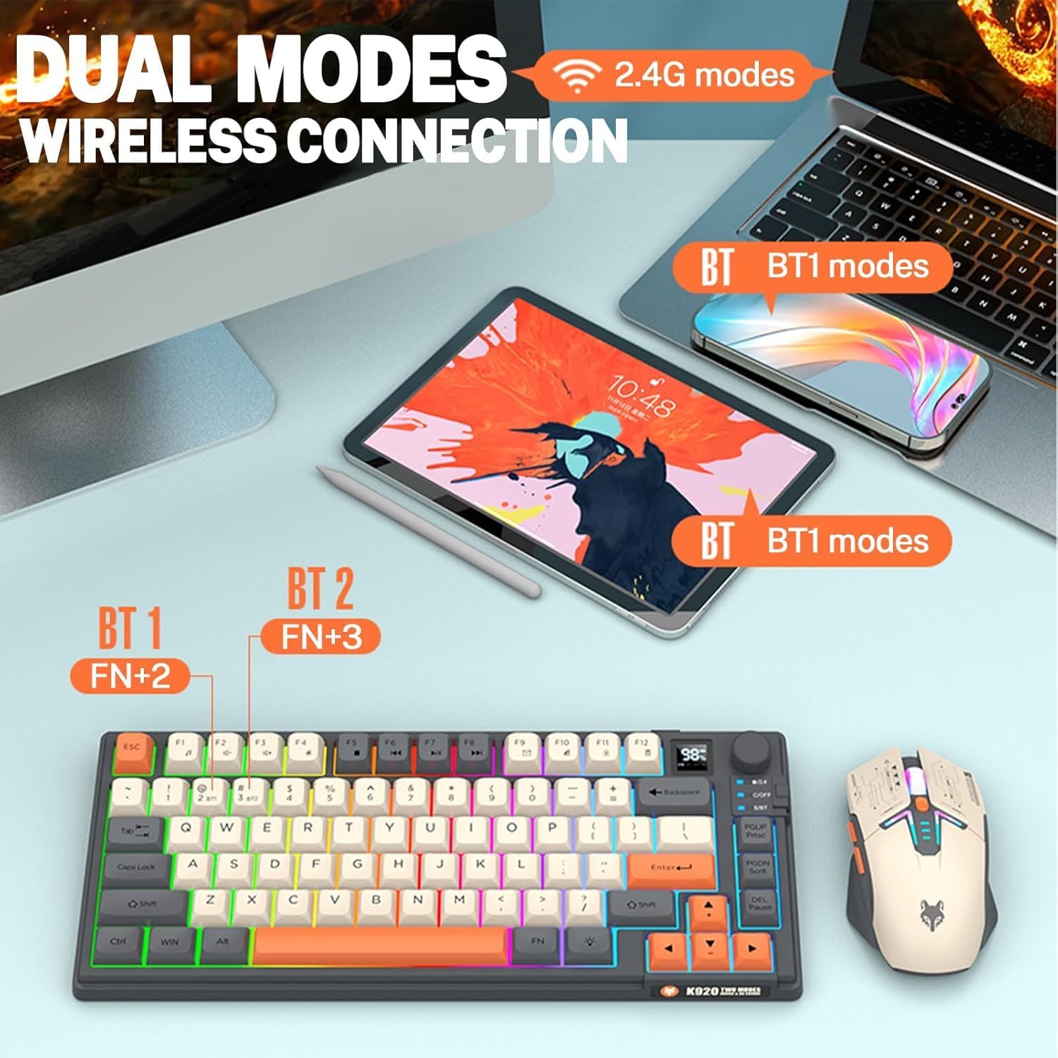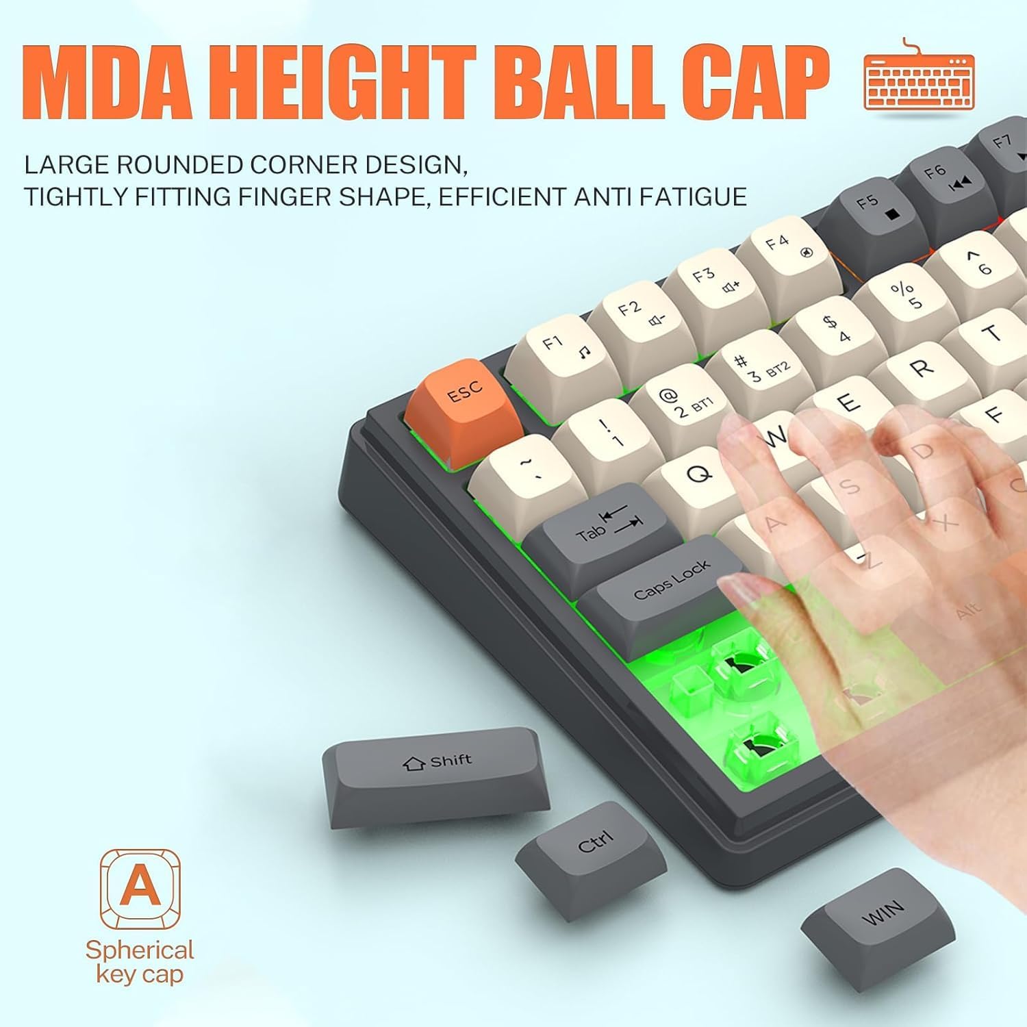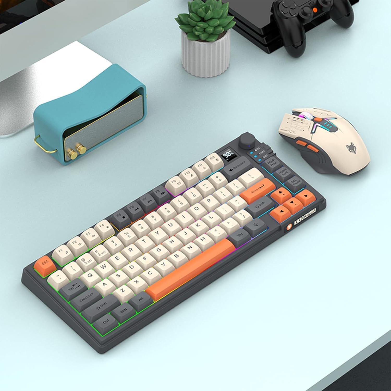 【75% Compact Design】: Wireless gaming keyboard compact mini design, save space on the desktop, novel blue & orange&white MDA Keycap color matching, separate arrow keys, No numpad, both gaming and office, easy to carry size can be easily put into the backpack.