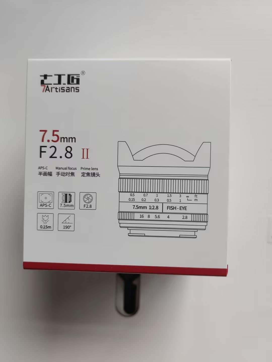 Focal length 7.5mm, aperture F2.8-F16