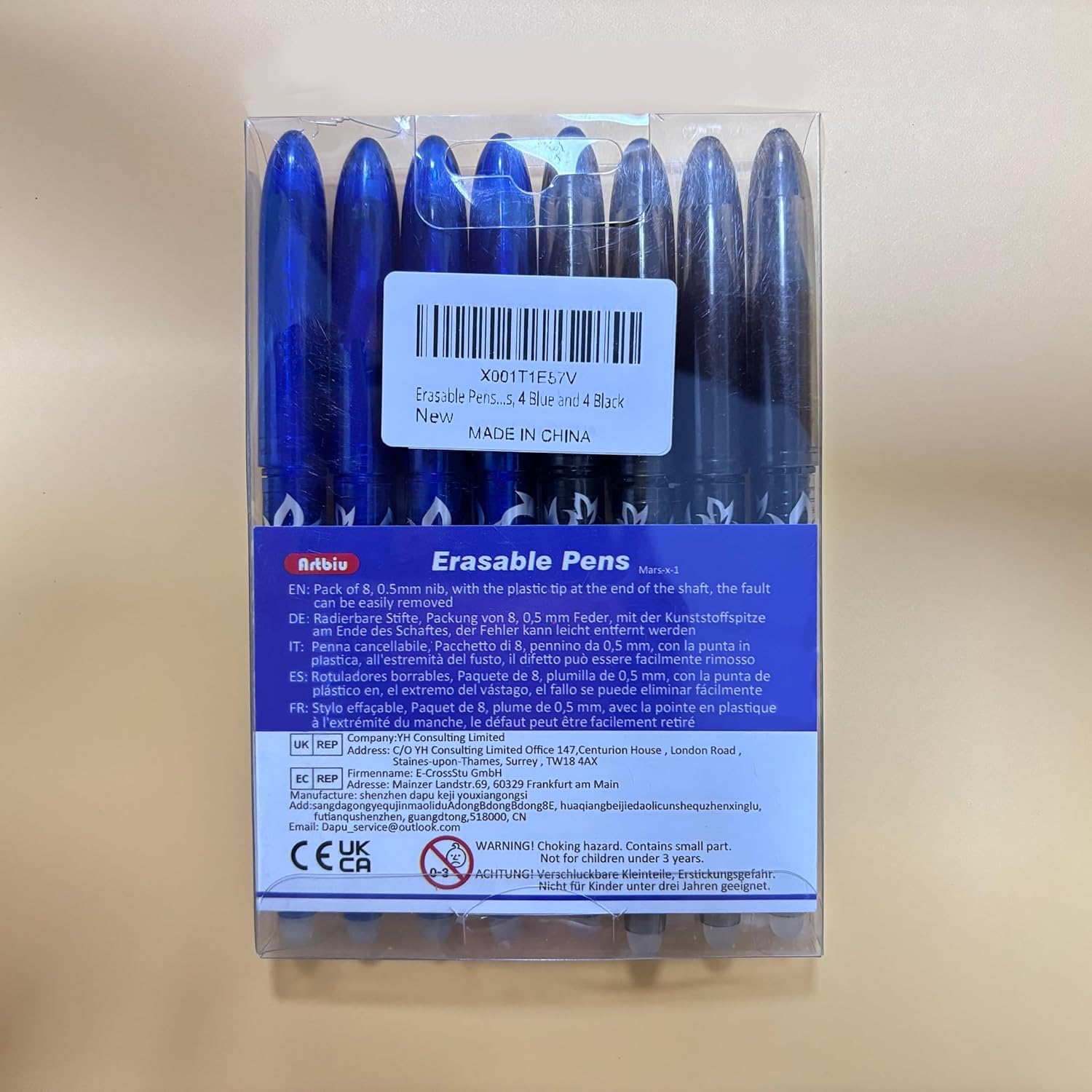 8 reviews for 8 Erasable Pens Black Blue, Rub Out Pens Ink Eraser Pen with Rubber, Friction Pens with Rubbers on the End, 0.5mm Erasable Gel Pens for Writing Adults Kids Stationary Supplies Back to School Supplies